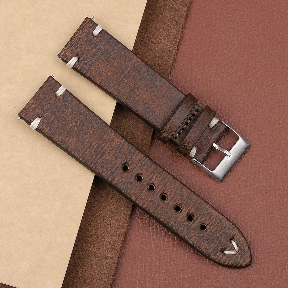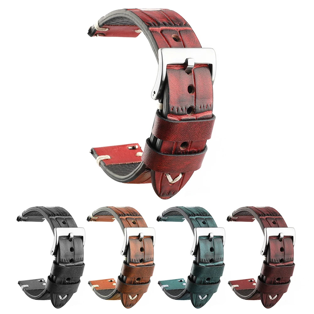 Ремешок ручной работы из натуральной кожи, винтажный дизайнерский браслет из телячьей кожи с прострочкой, 18 мм 20 мм 22 мм 24 мм