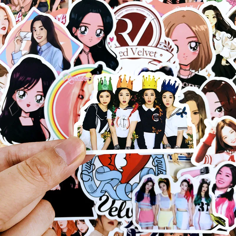 1050 шт.компл. красные бархатные корейские стикеры Kpop для скейтбордов ноутбуков чемоданов игрушек гитар холодильников мотоциклов
