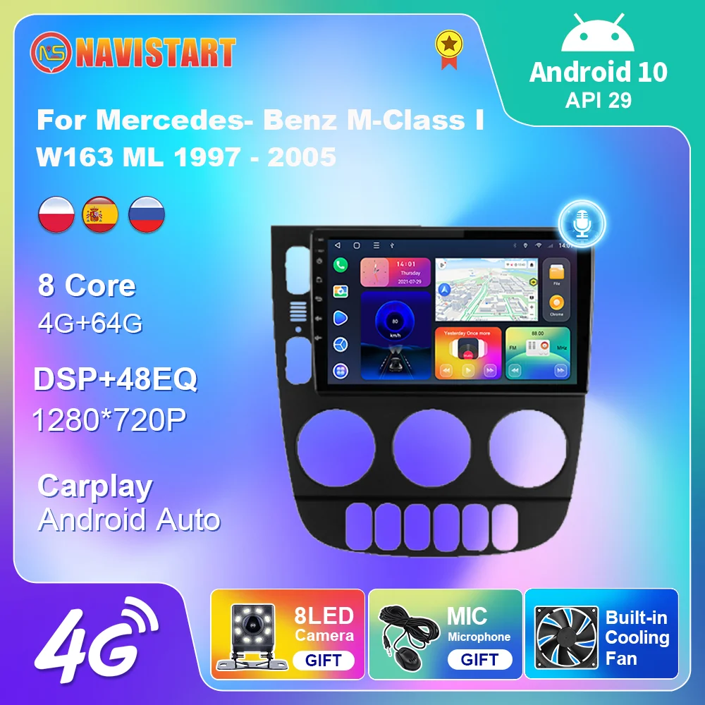Автомагнитола на Android 10 для Mercedes- Benz M-Class I W163 ML 1997-2005, Авторадио, мультимедийный плеер, навигация, GPS, камера 2 Din