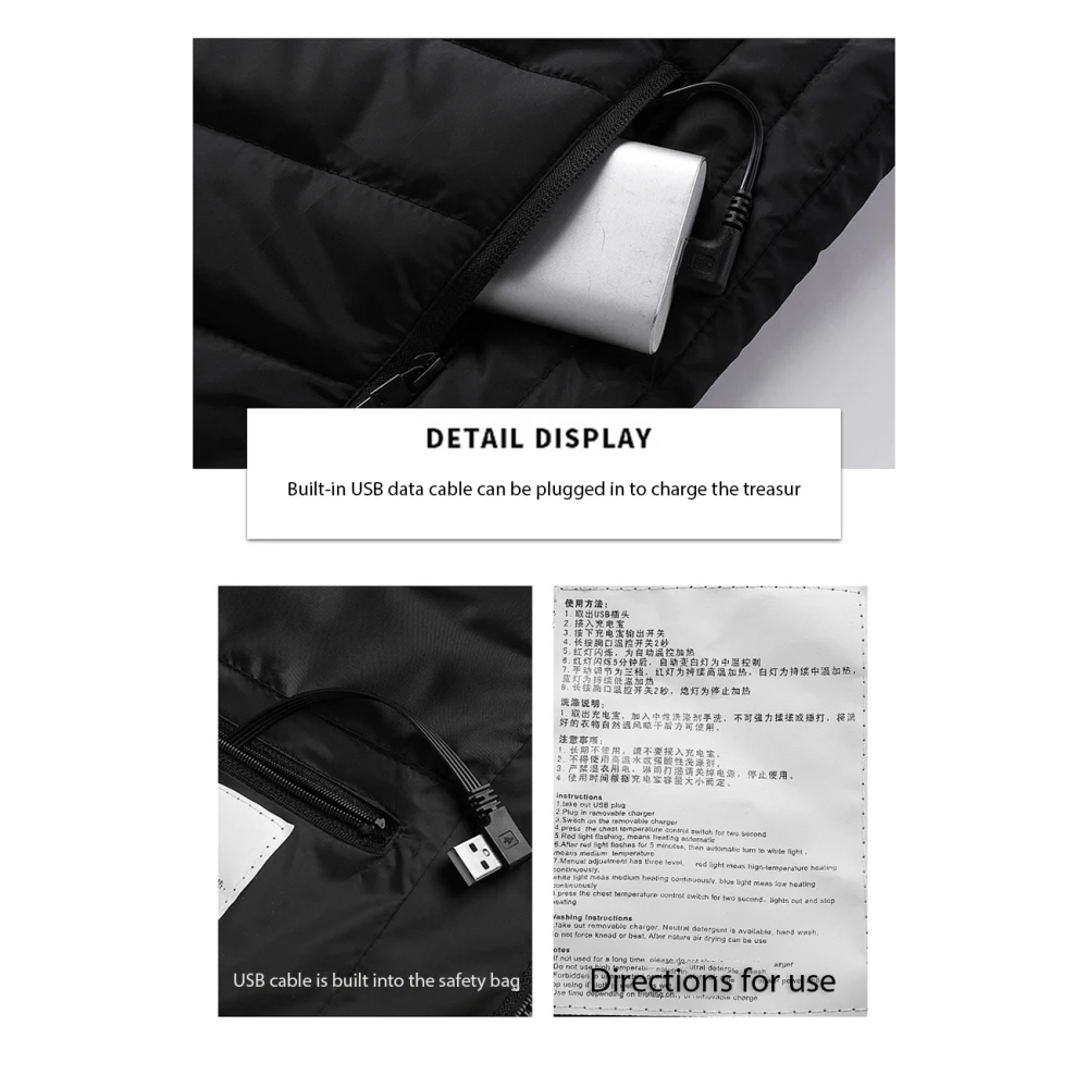 Описание:8 зон, мужские и женские куртки с подогревом, уличная жилетка, пальто с USB длинными рукавами, куртки с капюшоном, теплая зимняя теплая одежда красного цвета S1. Куртки с подогревом для мужчин поддерживают одну кнопку нагрева, три стойла контроля температуры, интеллектуальное отопление.2. Ткань 20D нейлон плюс Водонепроницаемая обработка.3. Общий источник питания с интерфейсом USB, куртки с подогревом для женщин имеют более длительный срок службы, анти-брызги воды и моющиеся.4. Модный жилет с подогревом для женщин, теплый, удобный и дышащий, и теплый жилет для мужчин, хороший партнер для вашей зимы.Характеристики:Изменение температуры (ручная регулировка)Теплый: 55 ℃ (красный светильник)Комфорт: 45 ℃ (белый светильник)Энергосбережение: 35 ℃ (синий светильник)Стиль: хлопковое пальто с длинными рукавамиМатериал: полиэстерЦвет: красный/синий/черныйРазмер: S-4XLИнтерфейс источника питания: USBФункция: сохраняет тепло, защищает от брызг воды и предотвращает появление холодаКак использовать:1. Выньте usb-разъем.2. Подключите съемное зарядное устройство.3. Включите съемное зарядное устройство.4. Нажмите на регулятор температуры грудной клетки в течение двух секунд.5. Красный светильник мигает, означает автоматическое нагревание.6. После того, как красный светильник мигает в течение 5 минут, затем автоматически поворачивается на белый светильник, означает среднюю температуру.7. Ручная регулировка имеет три уровня, красный светильник непрерывно нагревается при высоких температурах.Белый светильник означает, что средний нагрев непрерывно, синий светильник означает низкий нагрев непрерывно.8. Нажмите переключатель контроля температуры грудной клетки в течение двух секунд, выключите свет и прекратите нагревание.Дорогой друг1. В нашей таблице размеров указаны Азиатские размеры, Азиатские размеры L = европейские размеры M = американские размеры S.2. Пожалуйста, выберите размер исходя из веса и роста, основываясь на нашей таблице размеров, это правильно.3. Мужские и женские куртки с подогревом, уличная жилетка, пальто с usb электрической батареей, с длинными рукавами, теплые зимние куртки с капюшоном, теплая одежда для катания на лыжах (внешний аккумулятор не входит в комплект).4. Пожалуйста, обратите внимание, что блок питания не включен в этот товар.5. Вы должны принести самостоятельно. Используйте блок питания 5 в 2 А. Меньше, чем 20000 мА/ч, USB интерфейс.Примечание:-Возможны небольшие погрешности в размере при ручном измерении.-Отклонение цвета может отличаться из-за различных настроек монитора, пожалуйста, поймите.
