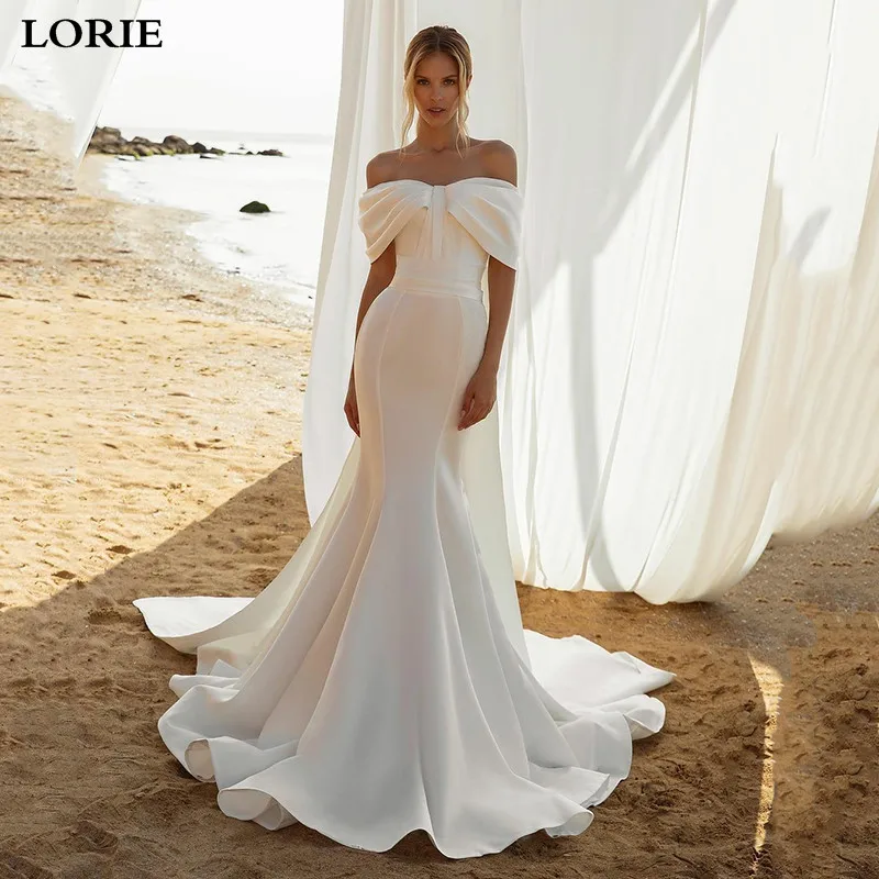 LORIE Свадебные платья с открытыми плечами Русалка без рукавов мягкое Атласное Свадебное Платье Иллюзия сзади свадебные платья