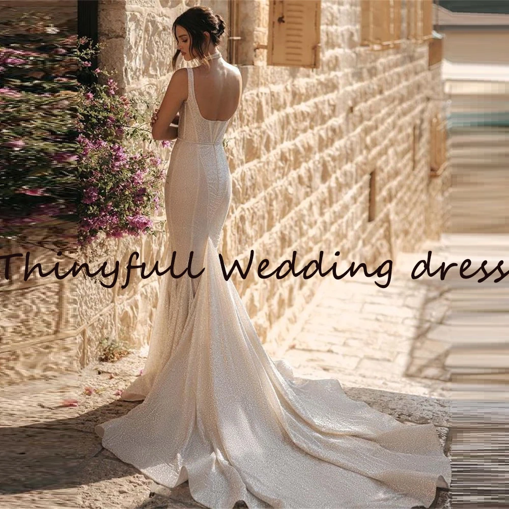 Thinfull блестящие свадебные платья-русалки без бретелек блестящие без рукавов Формальные платья принцессы невесты 2022