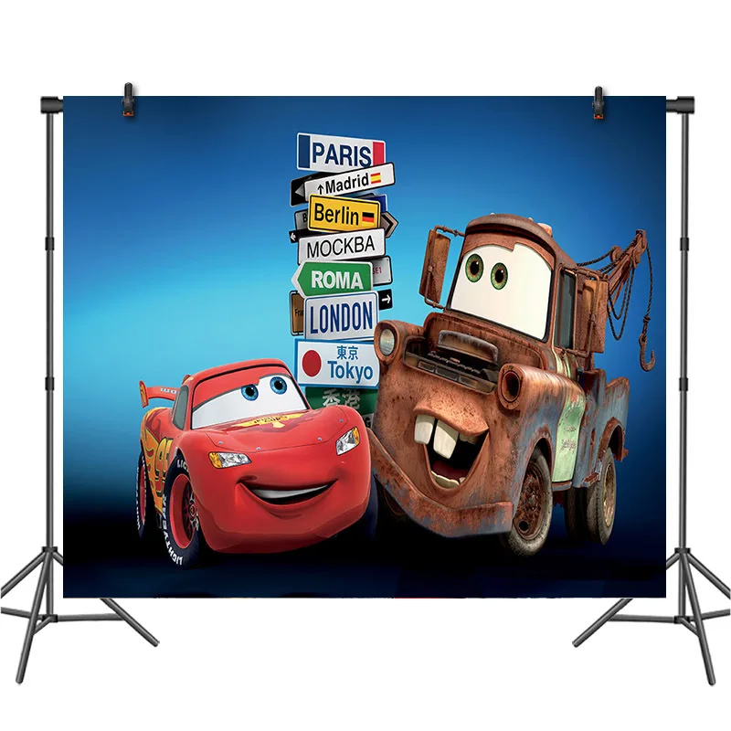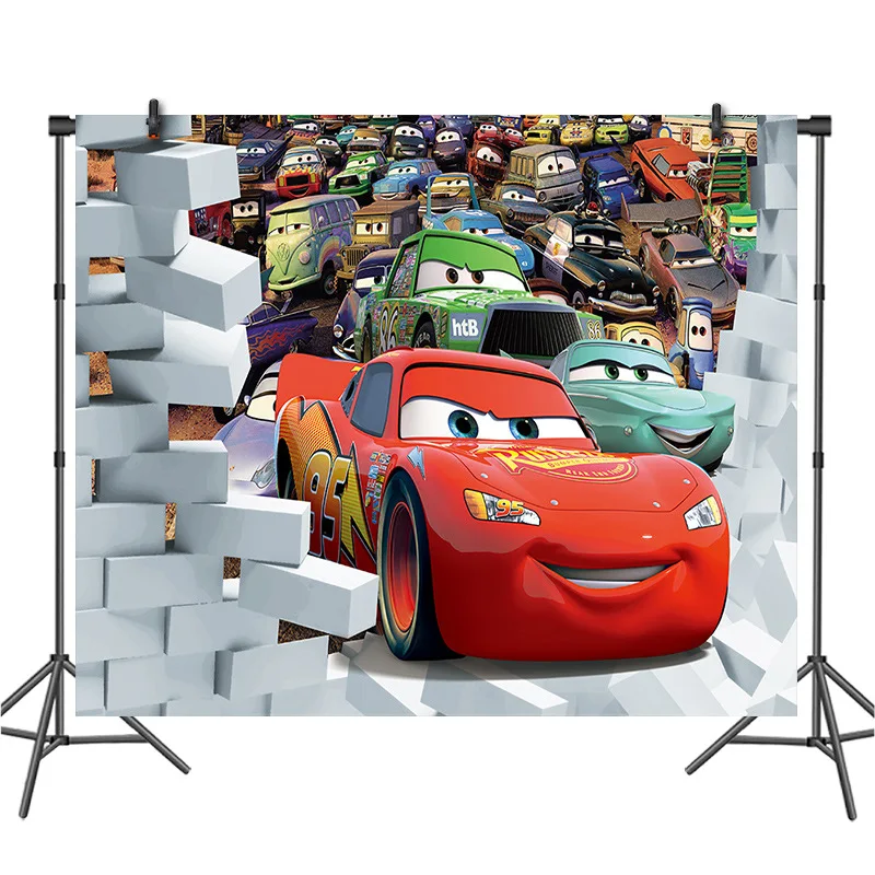Фон для фотосъемки Молния Маккуин с изображением машин на детский д...