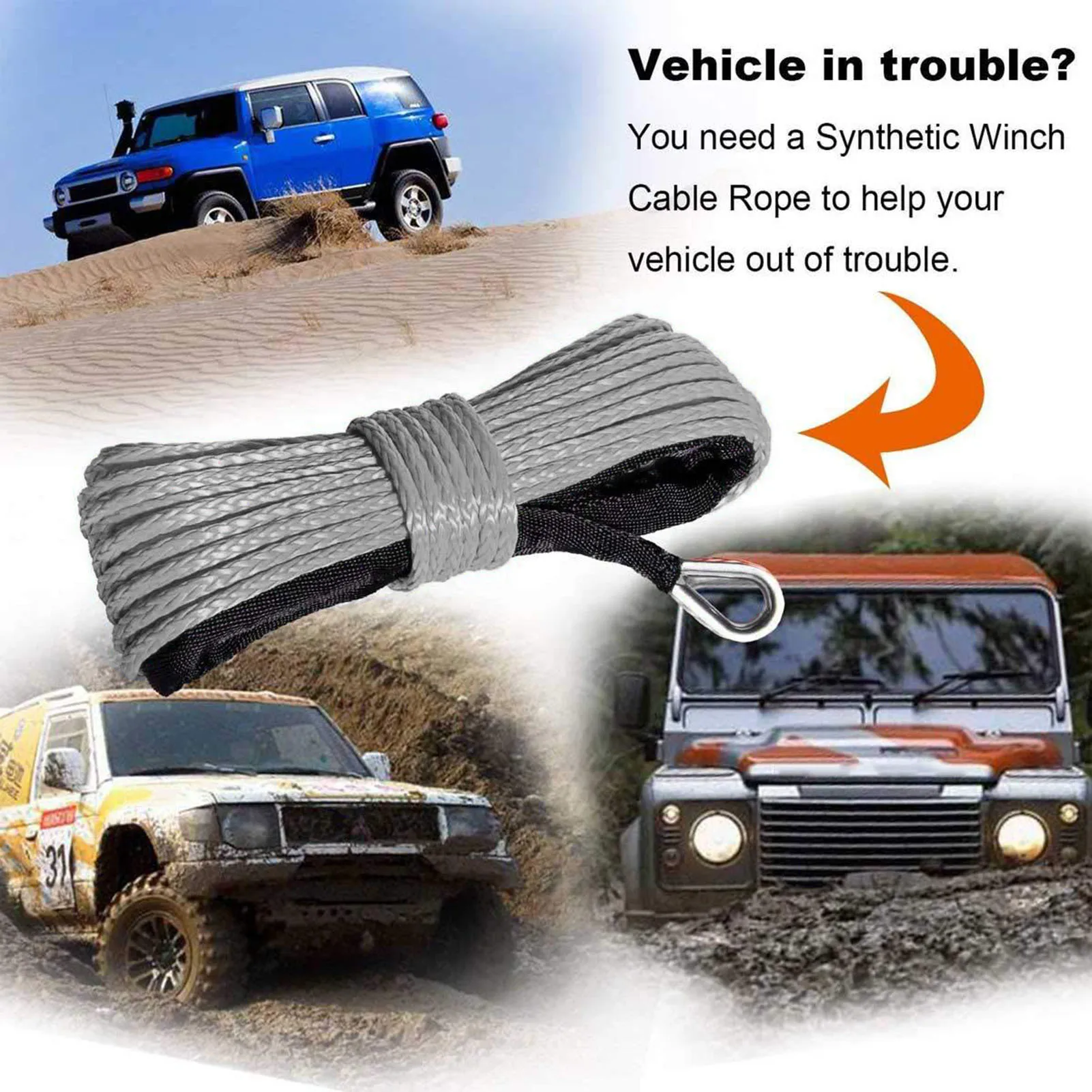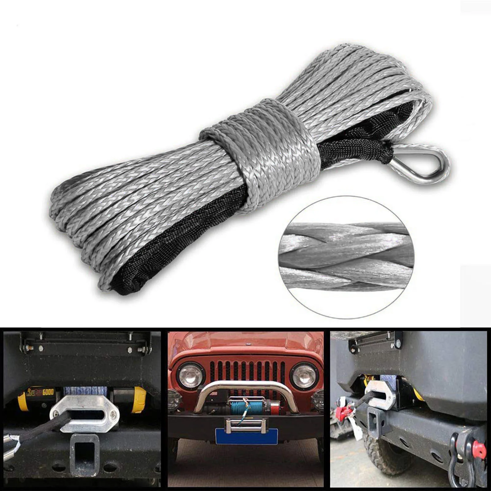 Трос для лебедки, трос, трос с оболочкой, серый синтетический буксировочный трос, 7700 фунтов, трос для обслуживания Мойки автомобиля Для вездехода, внедорожника