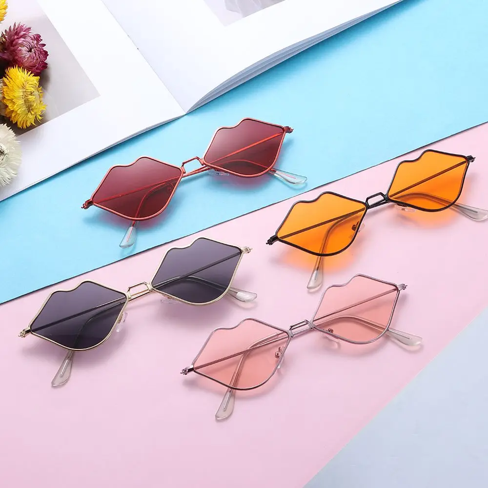 Солнцезащитные очки в форме губ для мужчин и женщин, в металлической оправе