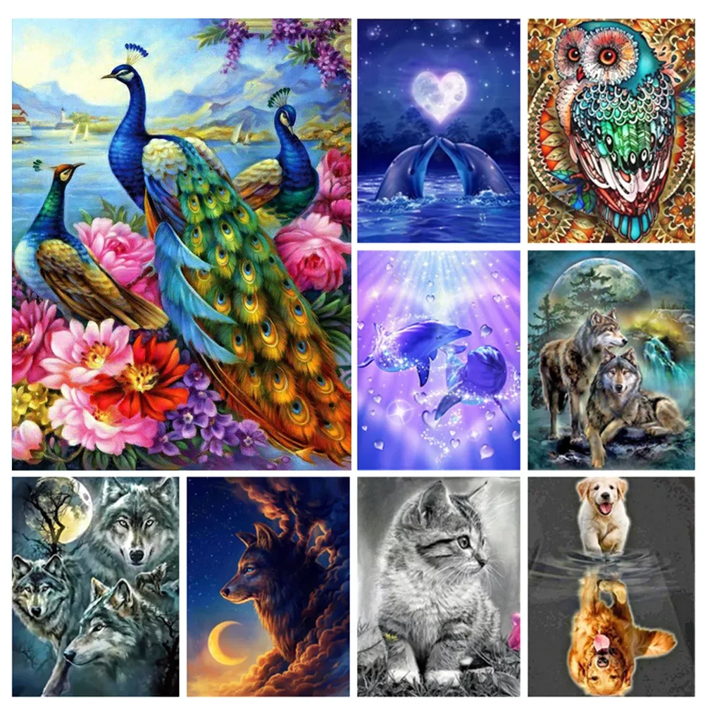 Алмазная живопись сделай сам, дельфин, волк, собака, тигр, Сова, лошадь, алмазная вышивка, мозаика, кошка, вышивка крестиком, домашний декор