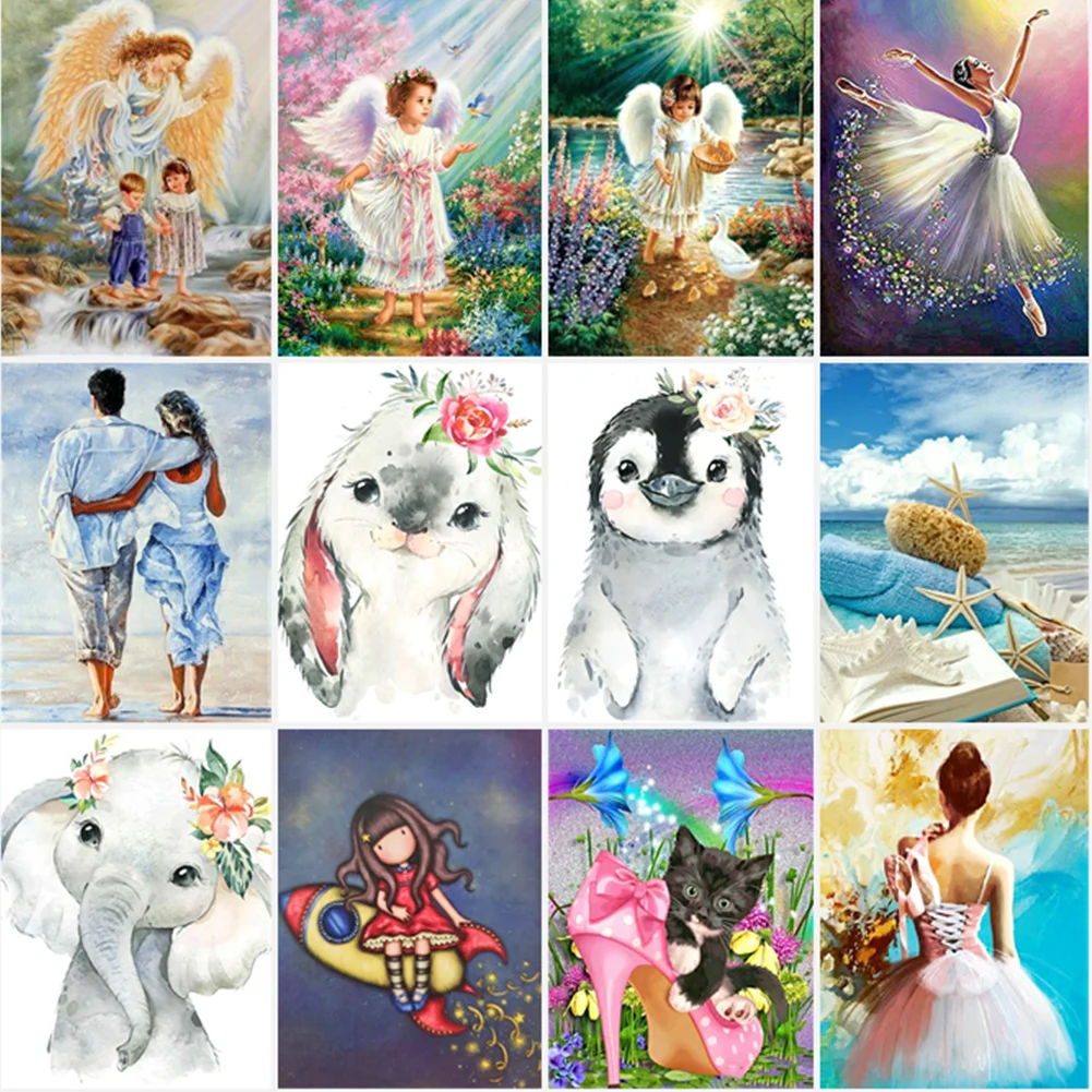 Алмазная живопись сделай сам, милые животные, кошка, слон, кролик, ангел, искусство мозаики, картина Стразы, домашний декор