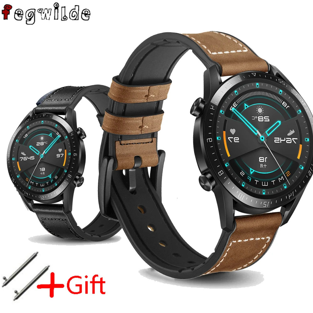Ремешок для часов Huawei GT 2, кожаный браслет 46 мм для смарт-часов huawei watch gt, 22 мм