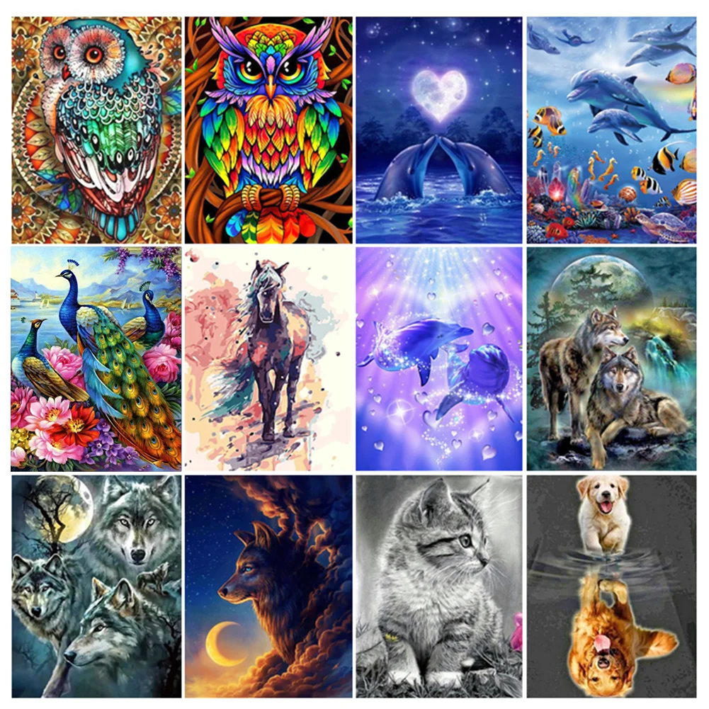 Алмазная 5D картина сделай сам, животное, волк, тигр, Сова, лошадь, дельфин, полная вышивка, мозаика, украшение для дома, подарок