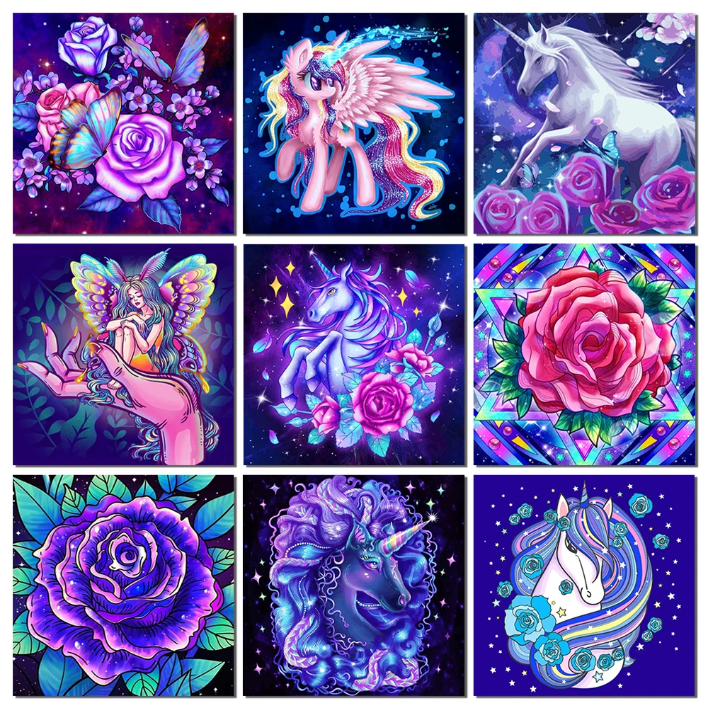 Алмазная живопись сделай сам, сказочный Единорог, алмазная вышивка, красочный цветок, вышивка крестиком, картина мозаичное украшение стены