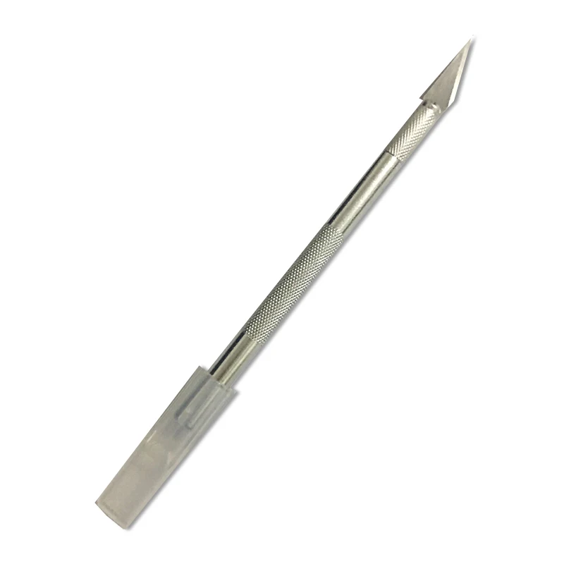 -Металлический нож без шелка: лезвие изготовлено из нержавеющей стали. Супер твердость, отличная резкость. Супер острота для лезвия края, вырезать все с большой легкостью. Изогнутая режущая кромка-одна из более традиционных форм лезвия. Обычно используется для небольших разрезов.