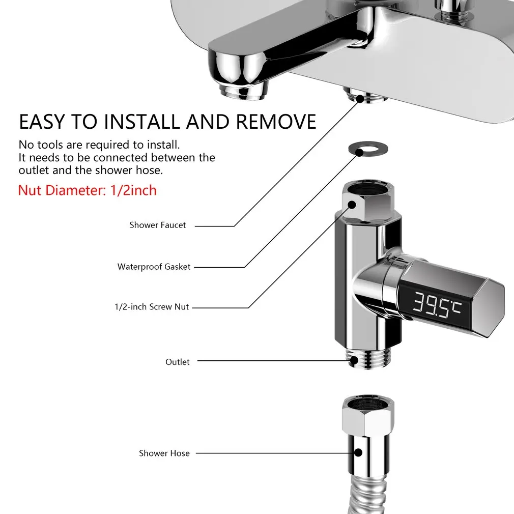 1. Батареи не требуются-устройство собирает свою энергию из потока воды.2. Быстрая и простая установка без каких-либо инструментов.3. Автономный термометр без батареи для контроля температуры душа.