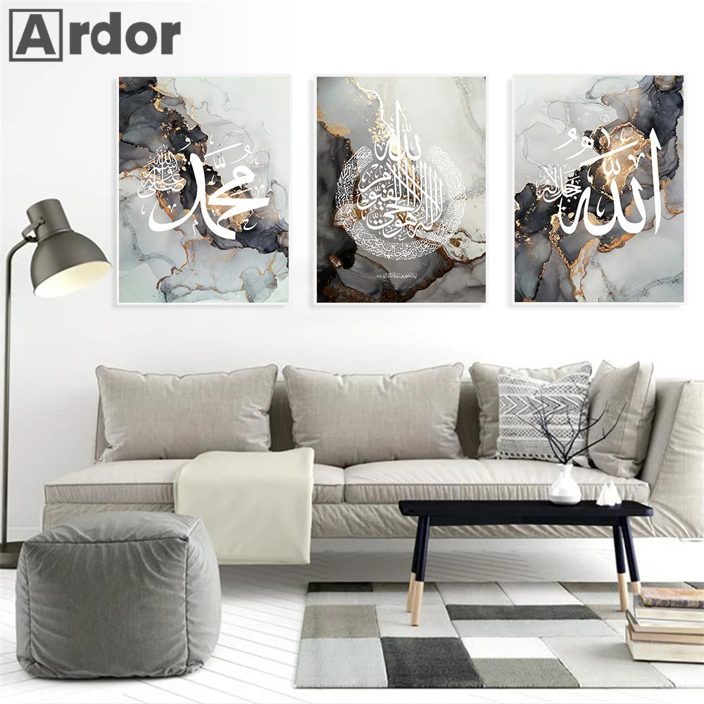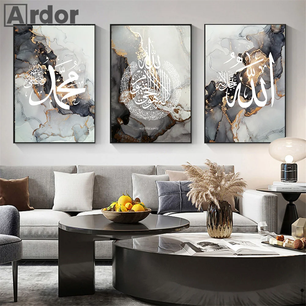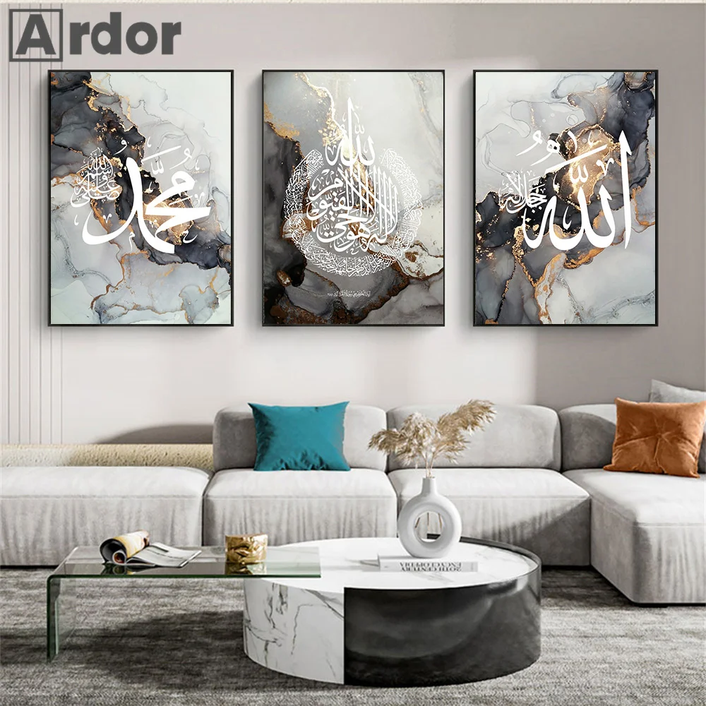 Мусульманская каллиграфия Золотая черная фотография и принты Ayatul Kursi Quran стена Аллаха Художественная Картина на холсте Декор для гостиной