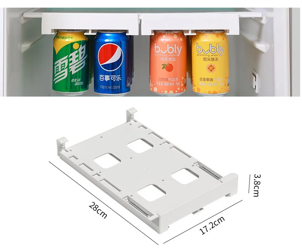 Органайзер для холодильника выдвижной диспенсер для газировки, держатель для напитков для шкафов холодильников, прозрачная пластиковая фотография