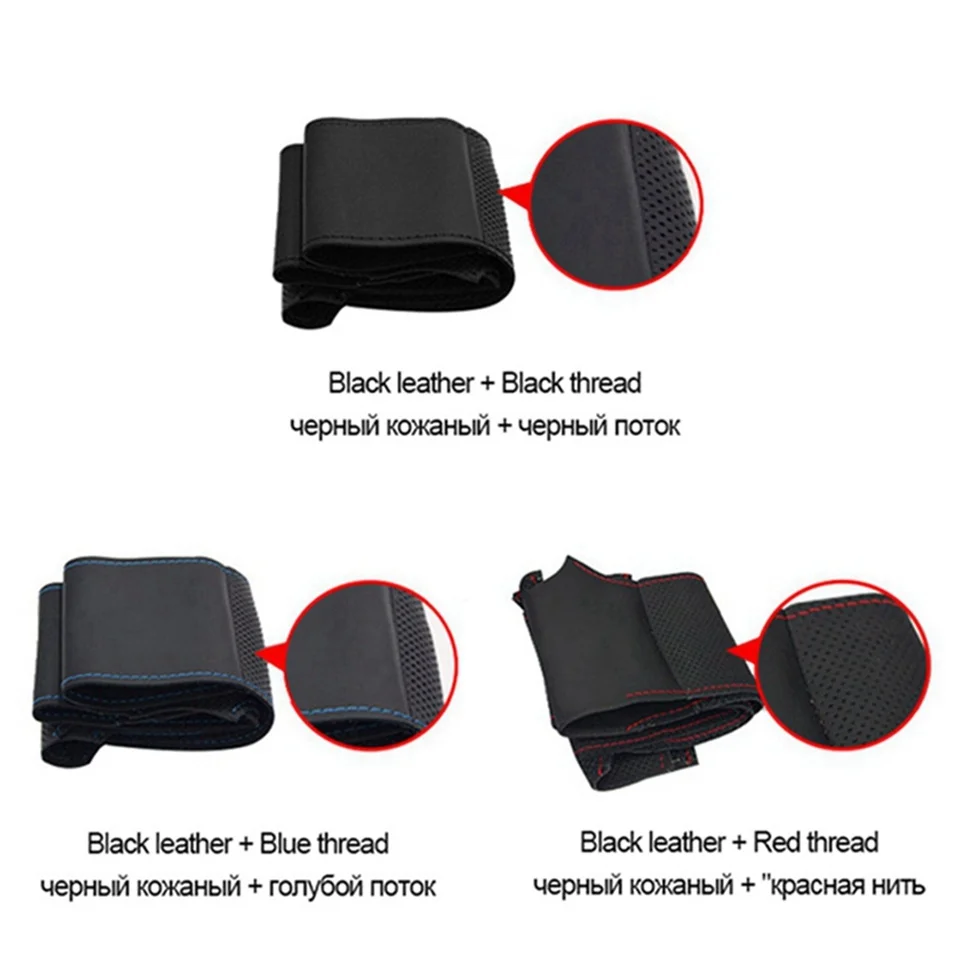 Черная ручная прошивка искусственная кожа PU чехол рулевого колеса ...
