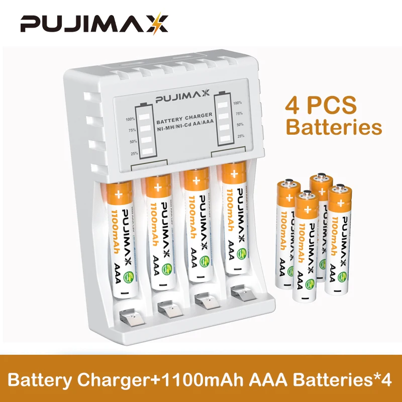 4 шт., перезаряжаемые аккумуляторы 1100 мАч, 4 слота