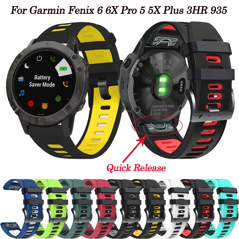 Ремешок силиконовый для смарт-часов Garmin Fenix 7 7X 6 6X Pro, быстросъемный браслет для наручных часов Fenix 5 5X Plus 3 3HR 935, 26 22 мм