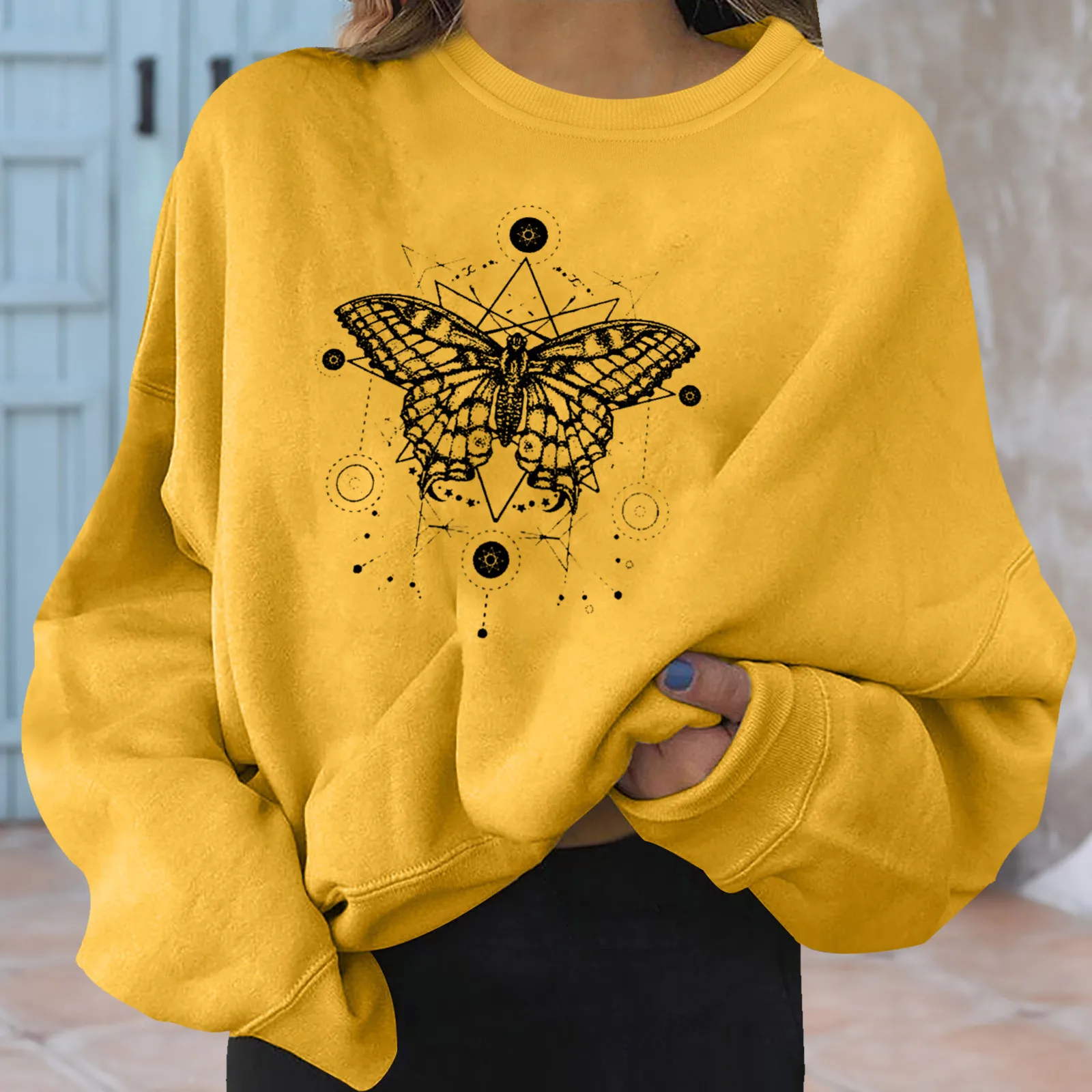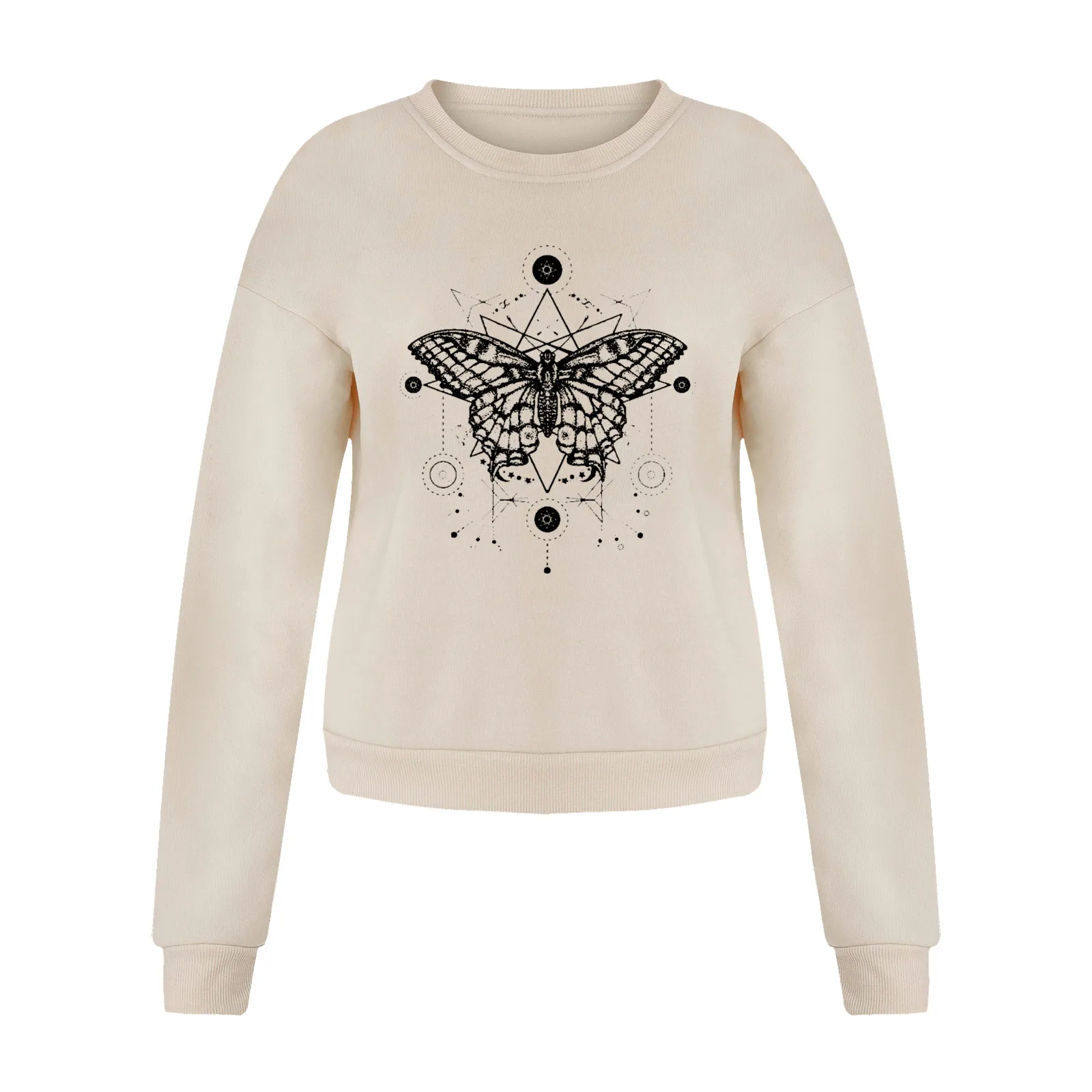 Женские Повседневное с длинным рукавом свитшот с круглым вырезом с принтом в виде бабочек, Свободный Топ, одежда для мальчиков