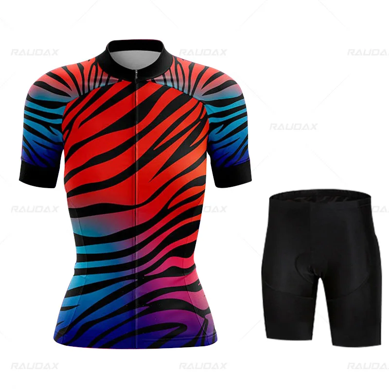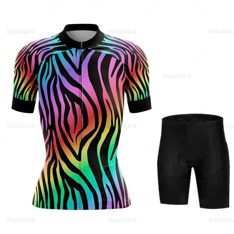 Raudax, летняя мода, дикая зебра, женская, Qucikdry, короткий рукав, велоспорт, джерси, быстросохнущая, велосипедная одежда, спортивные шорты, костюм для горного велосипеда