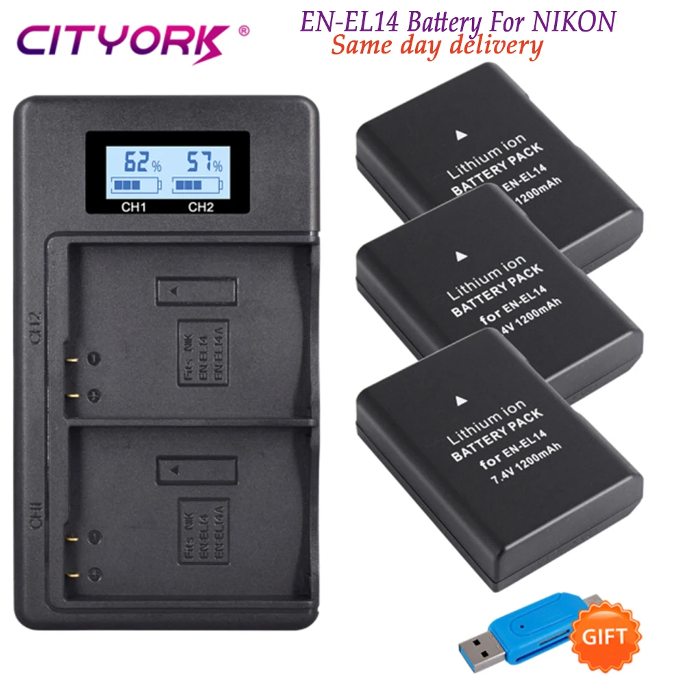 CITYORK EN-EL14 ENEL14 EN EL14 EL14a аккумулятор + ЖК USB двойное зарядное устройство для Nikon D5100 D3100 D3200 D3300 D5100 D5200 D5300
