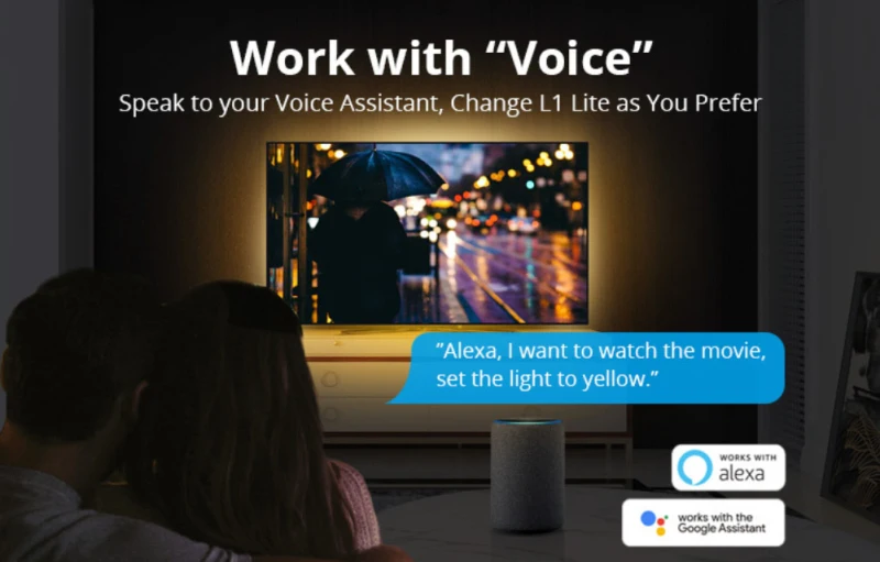 [Голосовое управление] Наши полосы L2 lite поддерживают как Google, так и Alexa, изменяют цвет и его яркость и температуру через ваш голос.