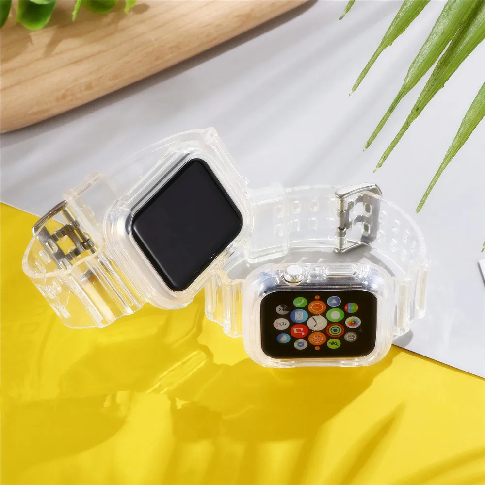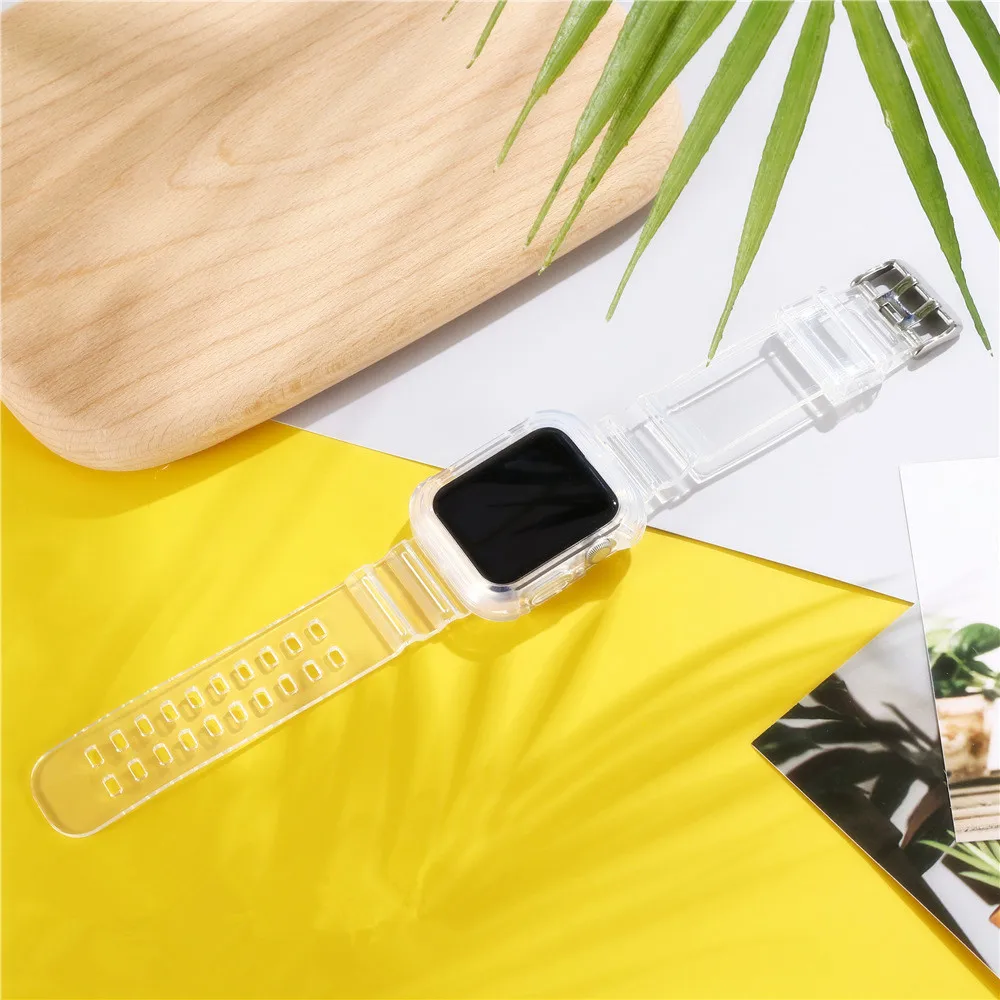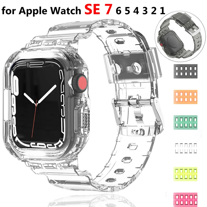 Чехол и ремешок для Apple Watch Band 41 мм 45 мм 40 мм 44 мм 42 мм38 мм, мягкий силиконовый прозрачный браслет, аксессуары для iWatch 5 4 3 SE 6 7