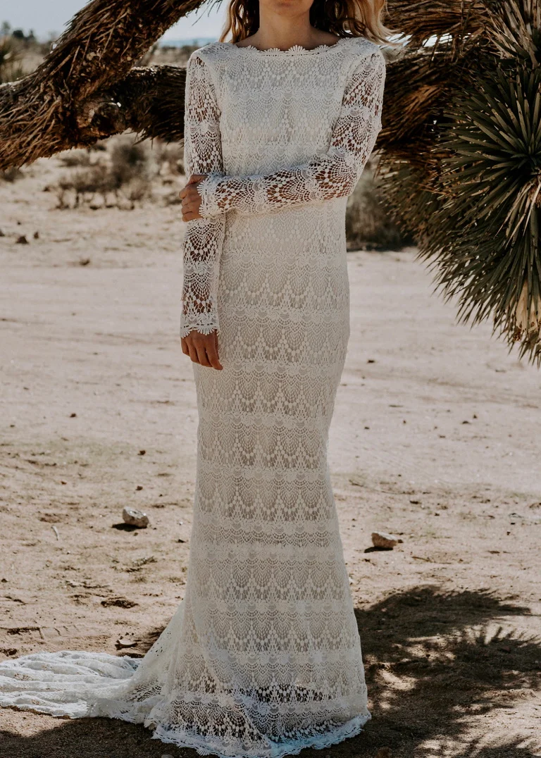 Кружевные богемные пляжные свадебные платья с глубоким круглым вырезом, женское сексуальное платье с открытой спиной и шлейфом в стиле бохо, свадебное платье на заказ