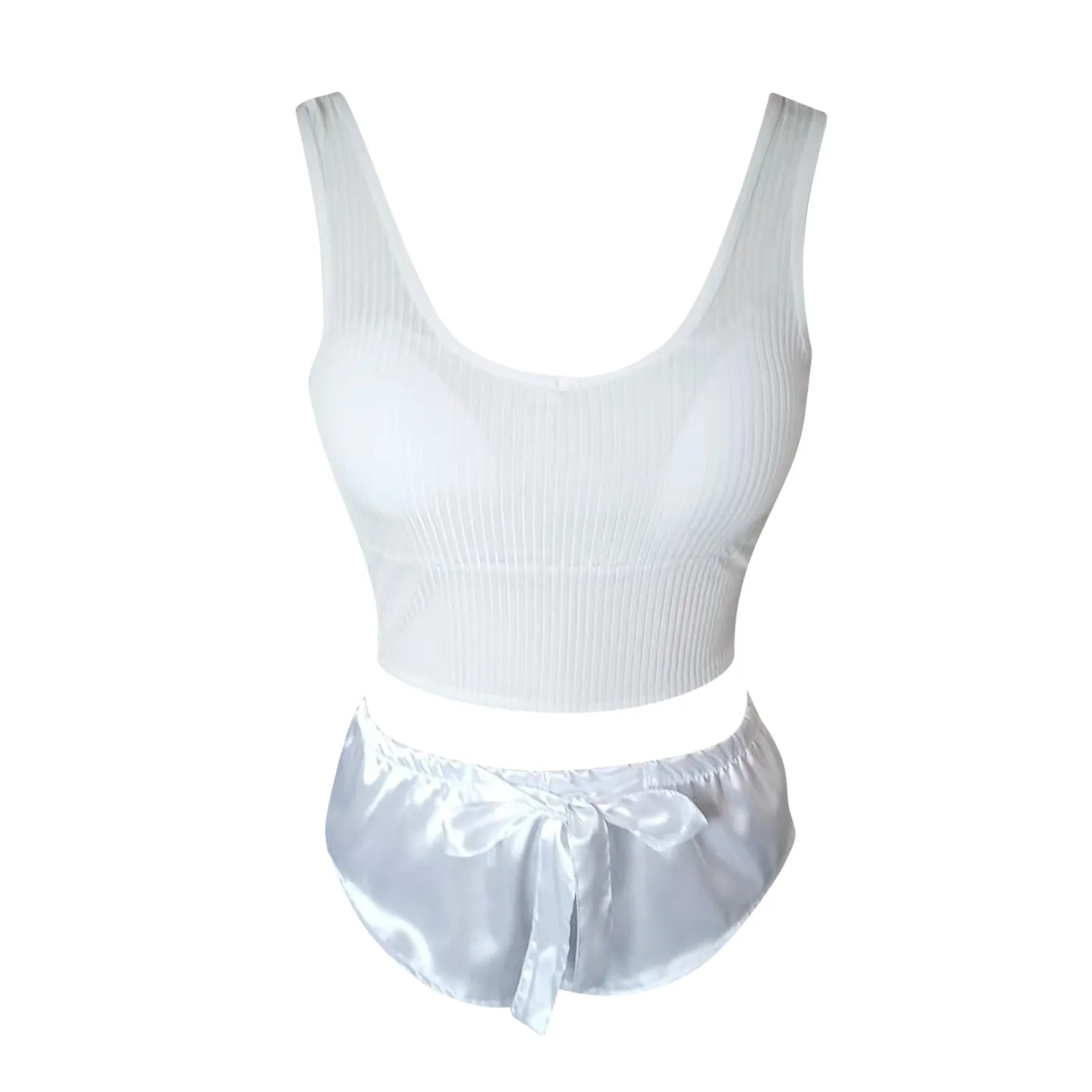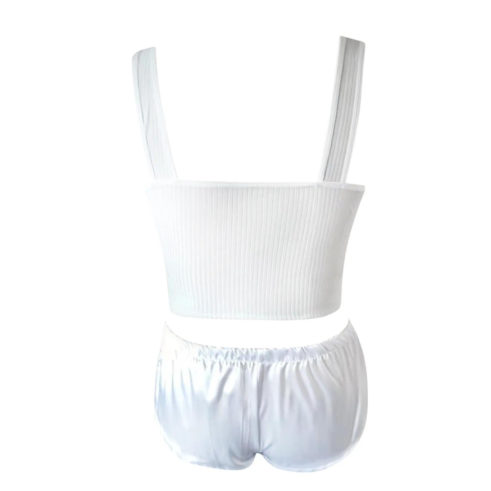 Пижамный комплект из топа и шорт, женская летняя пижама в рубчик с подкладкой без рукавов, облегающая Домашняя одежда из двух предметов, ночное белье, пижамные костюмы