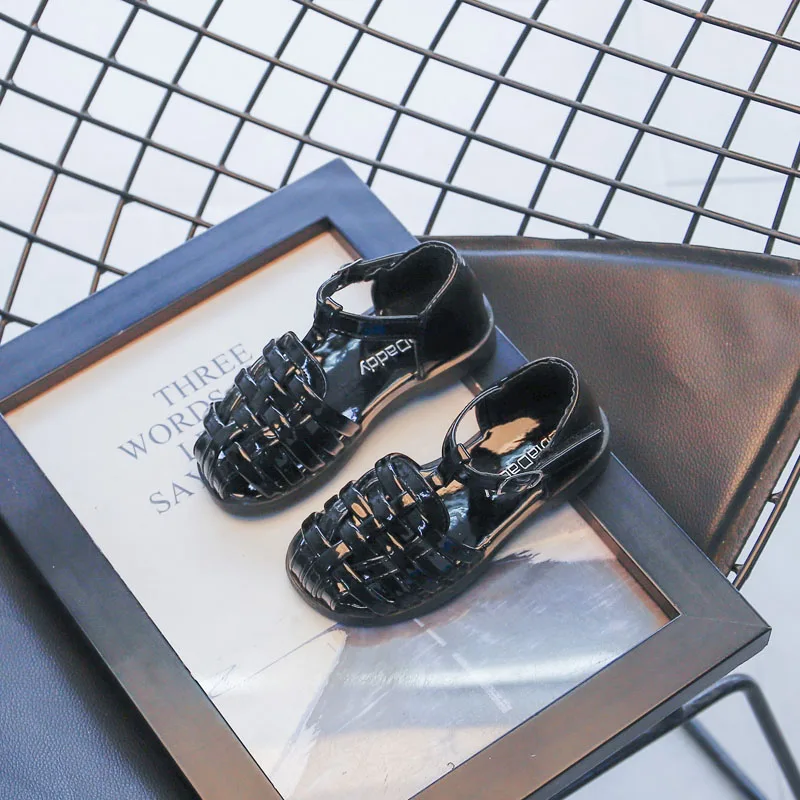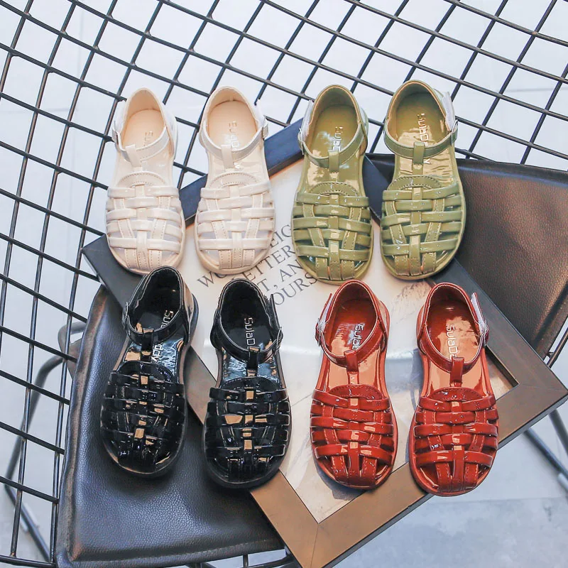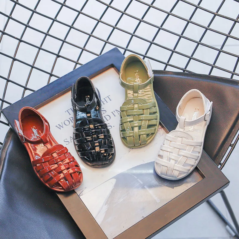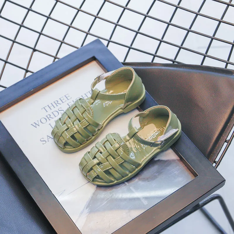 Летние сандалии для девочек из лакированной кожи, зеленые, красные, в гладиаторском стиле, с вырезами, Детские слайдеры 23-34, мягкая детская обувь