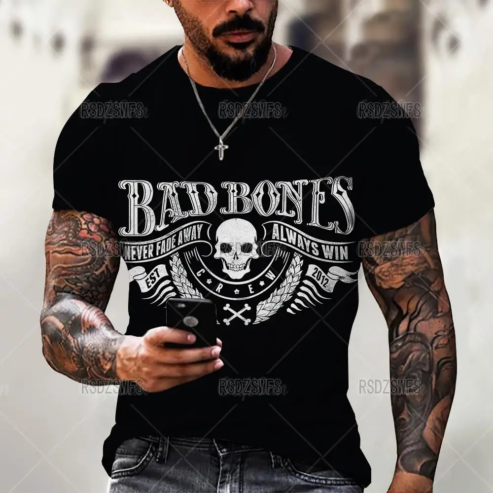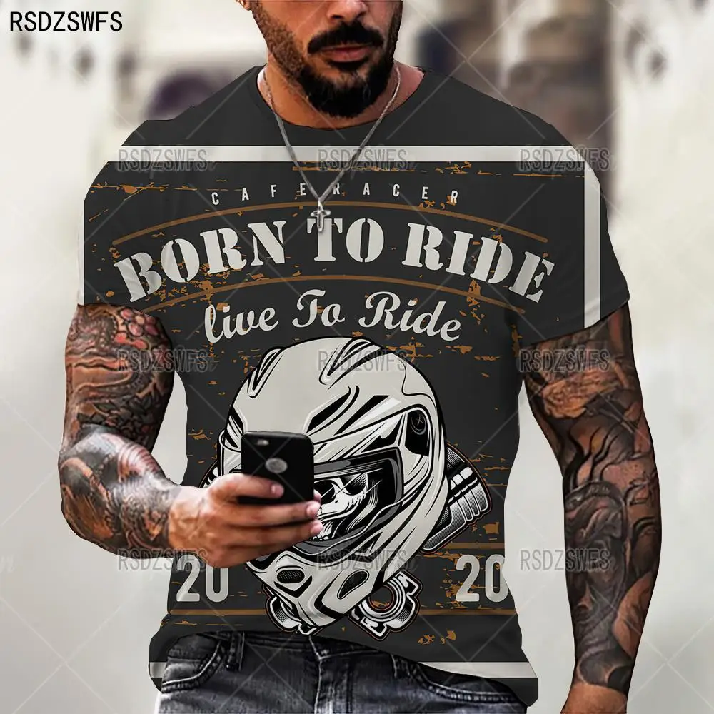 Футболка Мужскаяженская с 3D-принтом мотоцикла, свободная универсальная тенниска большого размера с принтом черепа, ужасов, скелета