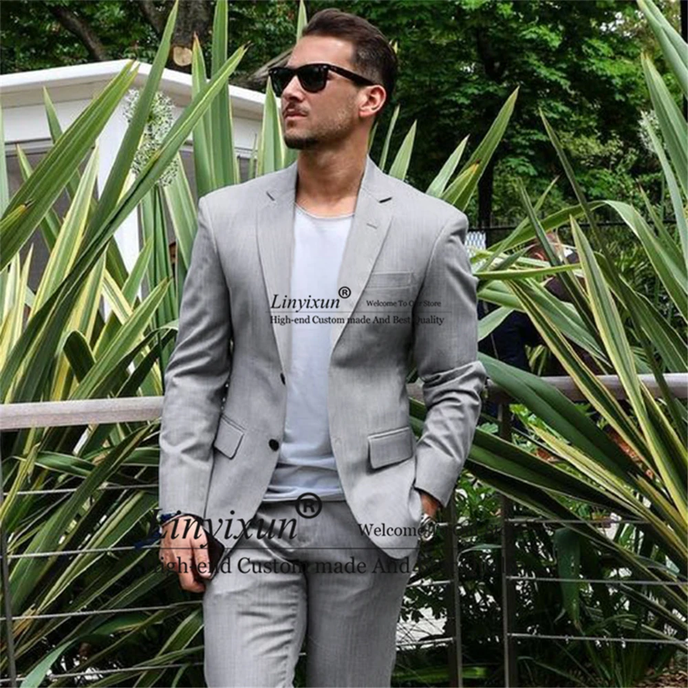 Модные серые мужские костюмы, Официальный деловой Блейзер, свадебный смокинг для жениха, облегающий Банкетный Блейзер, комплект из 2 предметов, мужской костюм из пиджака и брюк