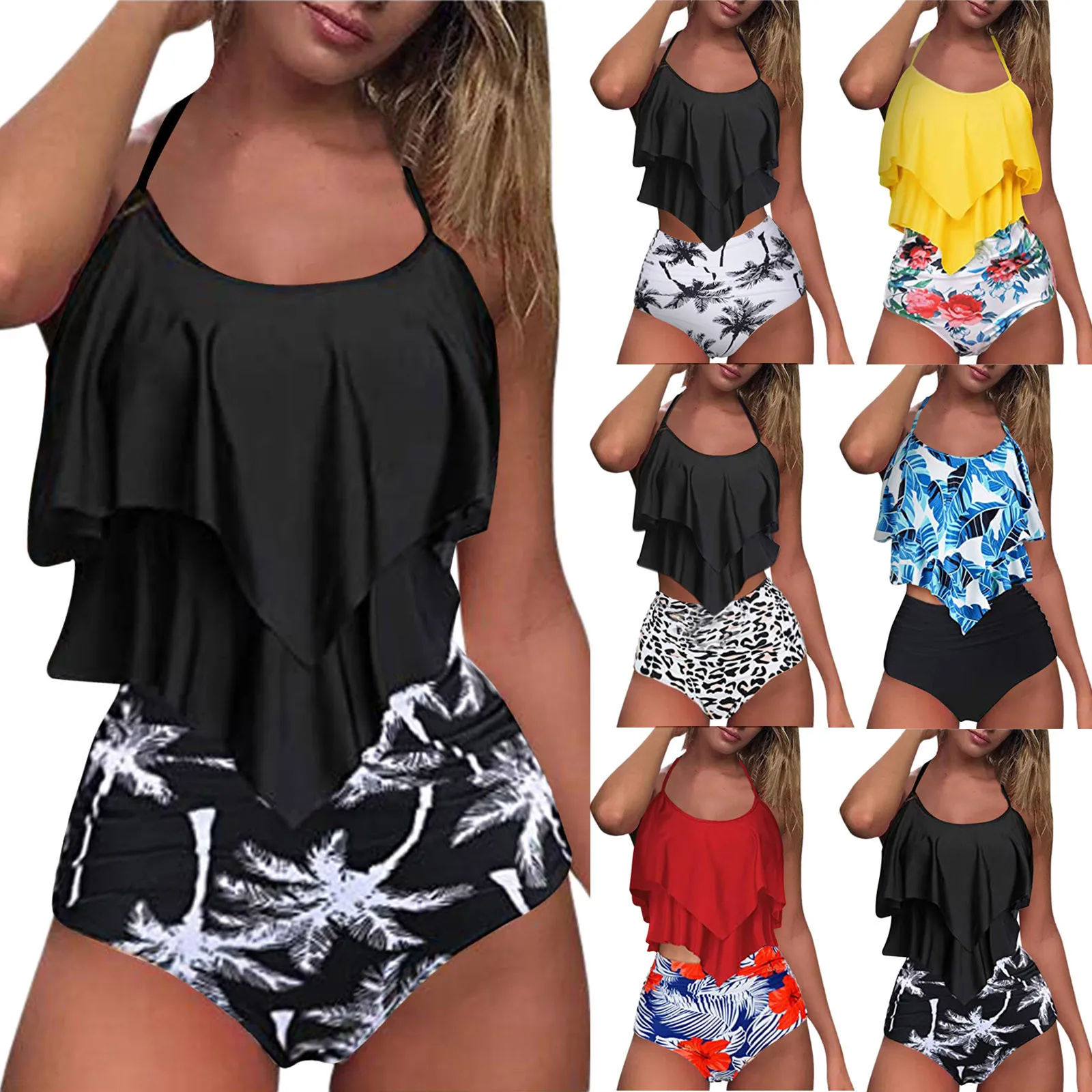 Женский летний модный Повседневный раздельный купальник-бикини с принтом и высокой талией