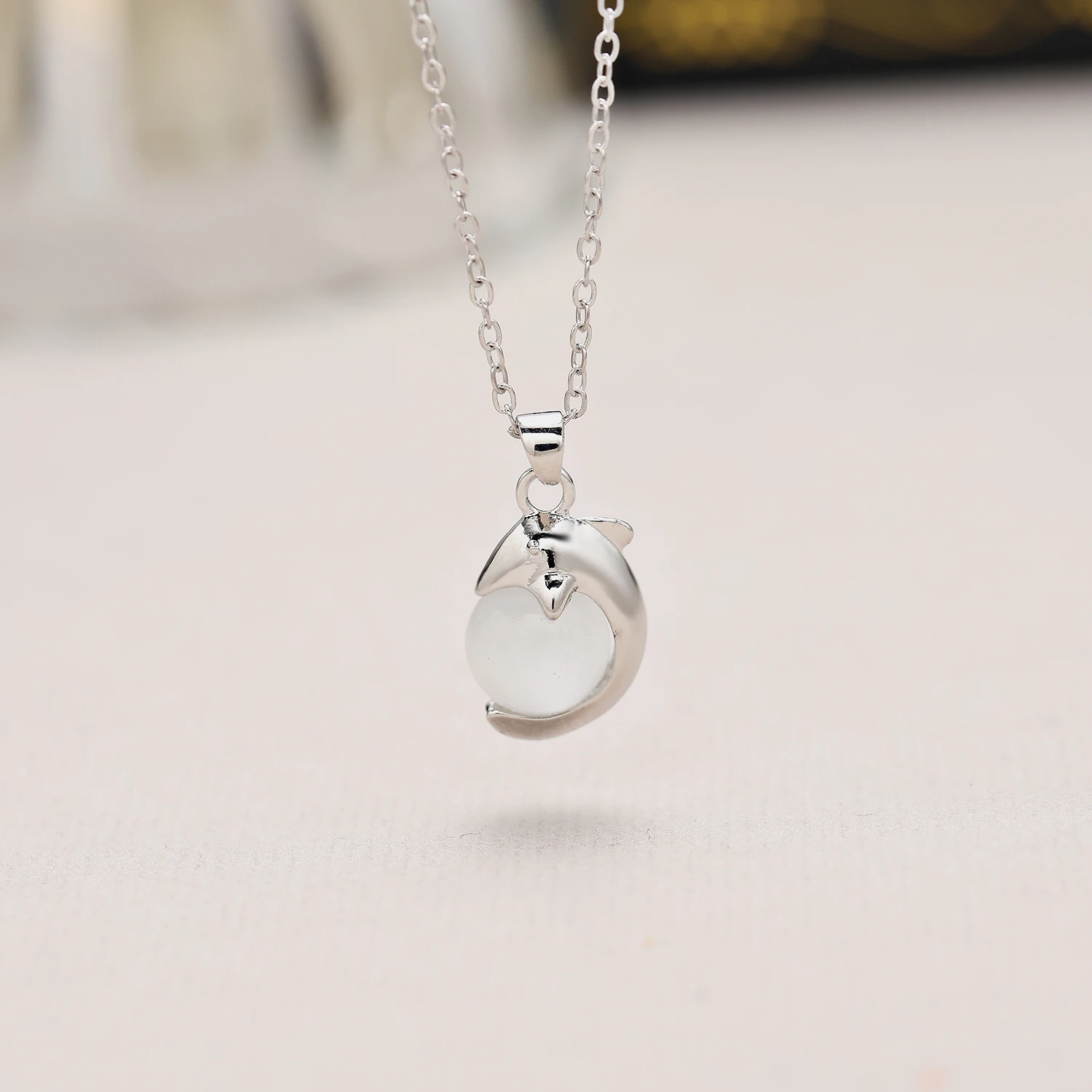 Простое дизайнерское ожерелье из натурального камня с подвеской в виде дельфина в виде капли воды для женщин Романтические Аксессуары для свадебной вечеринки подарок
