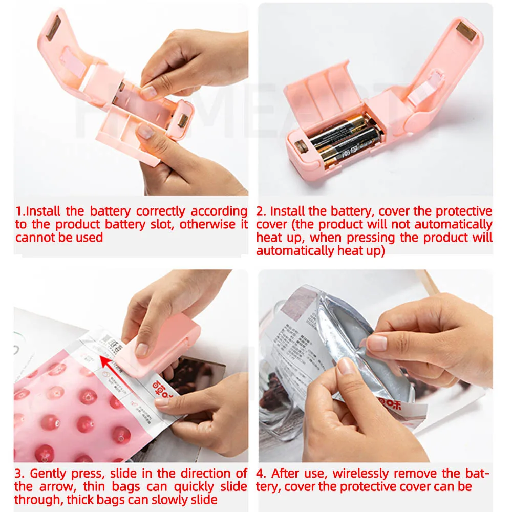 1, машина не будет генерировать тепло самостоятельно после установки совершенно новых батарей. Нажмите на него в течение 3-5 секунд, чтобы нагрев постепенно поднимался. 2, пожалуйста, используйте совершенно новые батареи. Не смешивайте полярность батарей. Убедитесь, что батареи правильно установлены. В противном случае машина не может генерировать тепло. 3, Длительное нажатие на машину в течение 3-5 секунд после того, как батареи правильно установлены. Затем машина начнет генерировать тепло. 4. Для толстого полиэтиленового пакета, пожалуйста, медленно перемещайте его между машиной, чтобы обеспечить равномерное распределение тепла для лучшей герметизации. 5, нет необходимости снимать батарейки. После использования просто перемещайте крюк между машиной, чтобы блокировать контакты двух металлических частей. Советы: Пожалуйста, не нажимайте на машину слишком сильно. В противном случае нагревательные металлы могут деформироваться и ломаться. Пластиковый пакет для герметизации должен быть чистым без масла или воды.