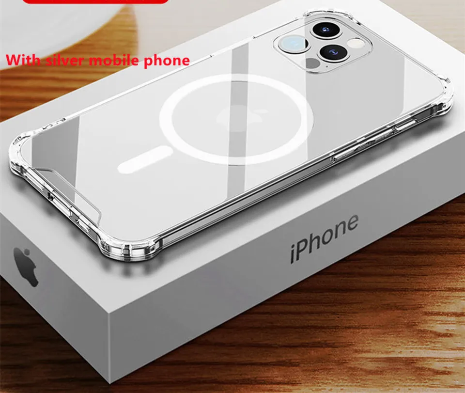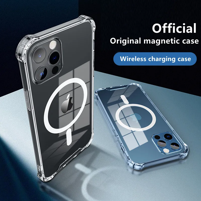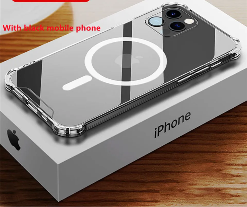Магнитный Прозрачный чехол для телефона magsafe с беспроводным заря...