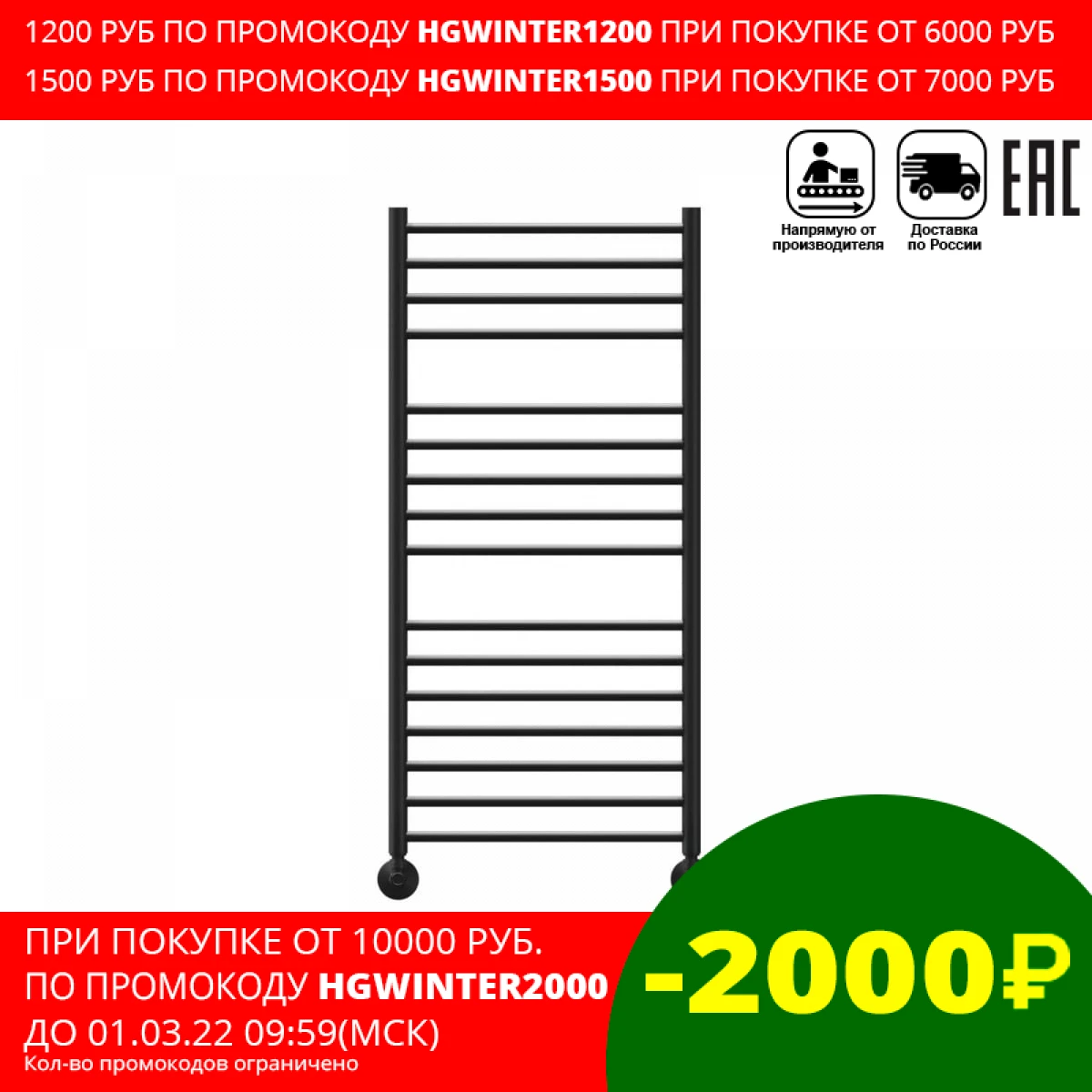 Полотенцесушитель LEMARK LM72116BL (черный, настенный)