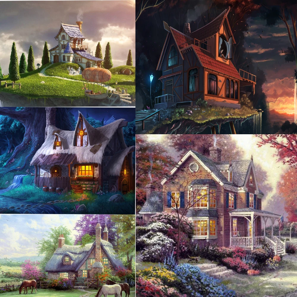 RUOPOTY набор масляных красок в рамке для взрослых, маленький дом в...