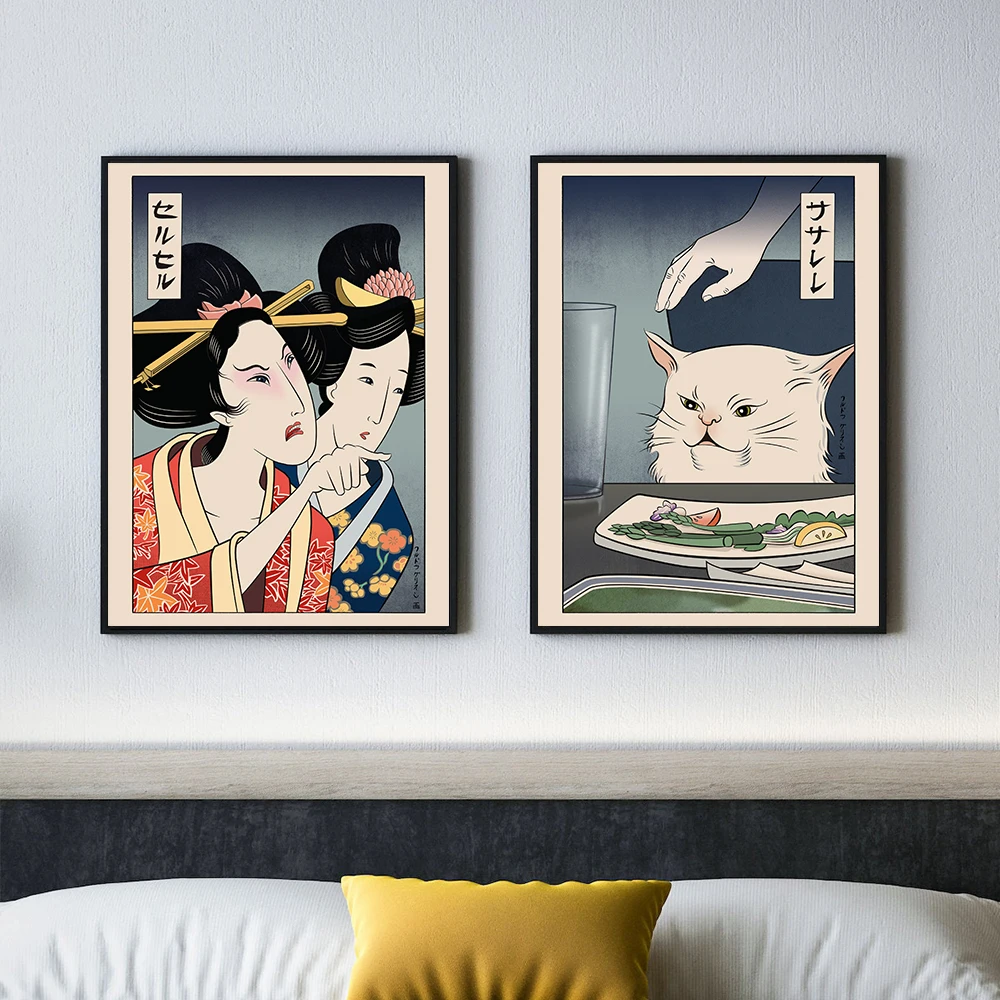 Японский стиль укиё-э Художественная печать японский женщина кот собака постеры для бара кафе гостиная домашний декор настенное искусство холст живопись картина