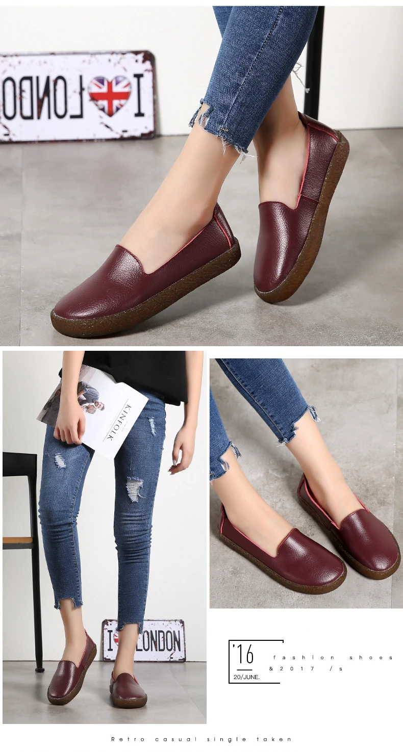Женские балетки из натуральной кожи, с круглым носком, Размеры 35-43