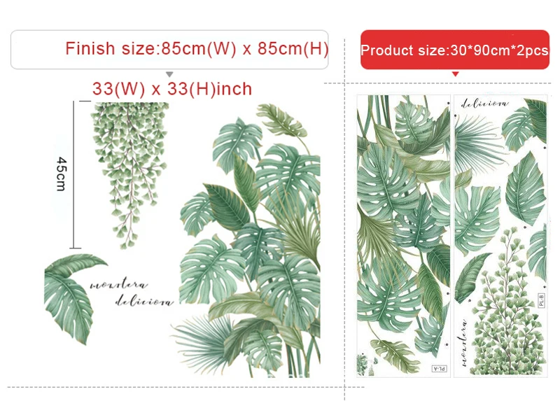 2 шт. тропический лист монстеры клейкая Наклейка на стену гостиная ...