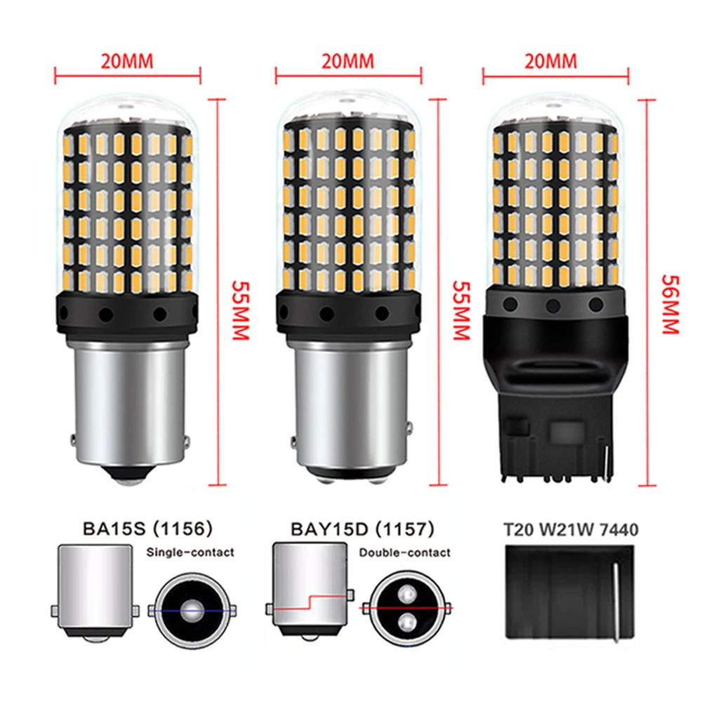 1 шт. 1156 Ba15S P21W Bau15S Py21W T20 7440 W21W 1157 светодиодный ные лампы 144 Smd светодиодная CAN-шина без ошибок лампа для указателя поворота без вспышки