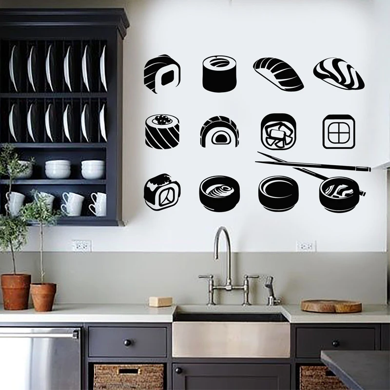 Настенные Стикеры для суши-бара, ресторана, кухни, японской кухни, наклейки для творчества, художественная роспись, Съемные Виниловые декорации, наклейки для детской комнаты