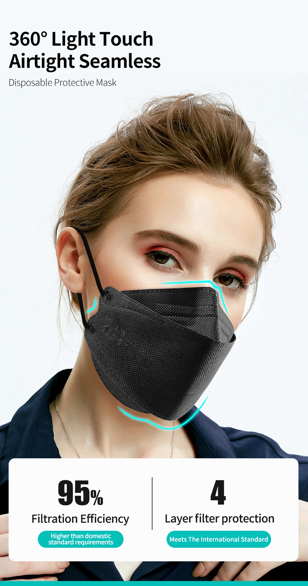 CE FFP2 маска для лица KN95 одобрено FPP2 4ply многоразовый защитны...