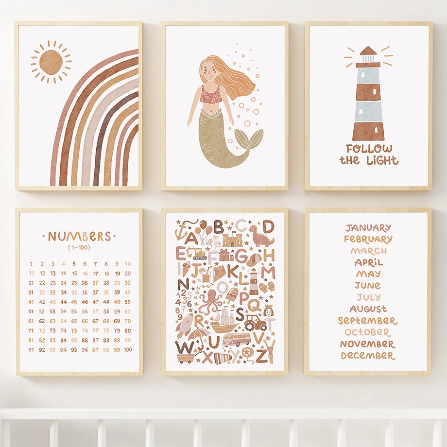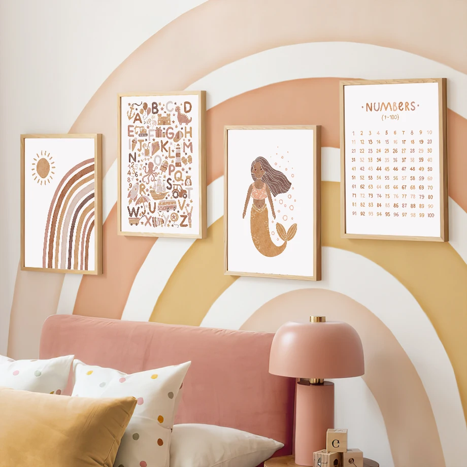 Настенная Картина на холсте с изображением милой русалки и месяца для маленьких девочек скандинавские плакаты и принты настенные картины для детской комнаты декор для спальни