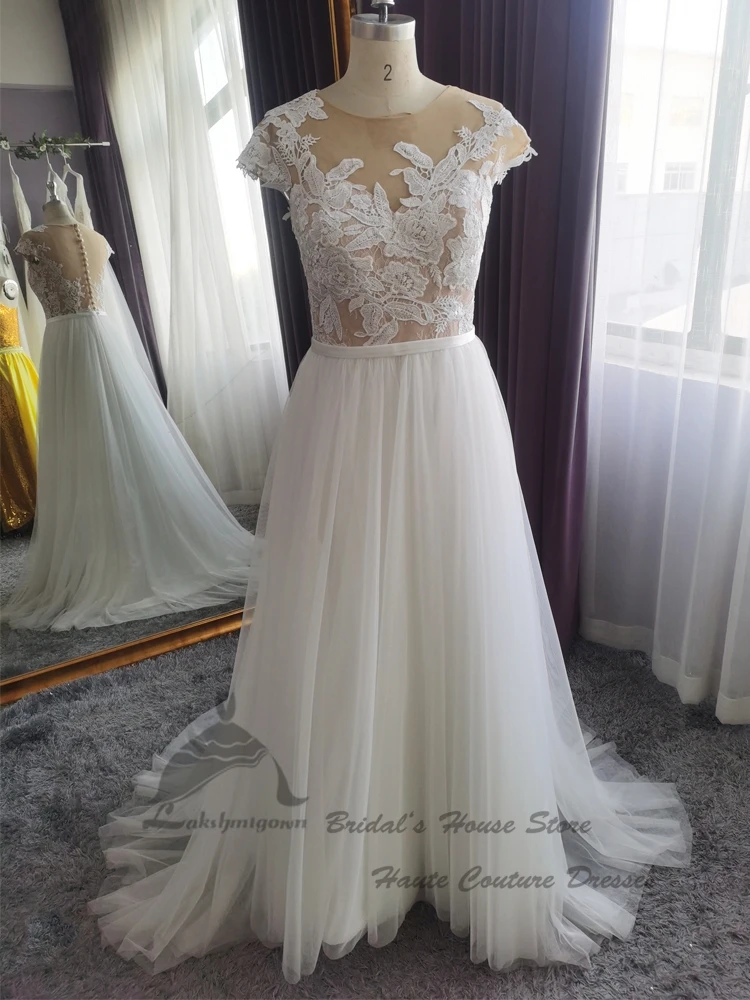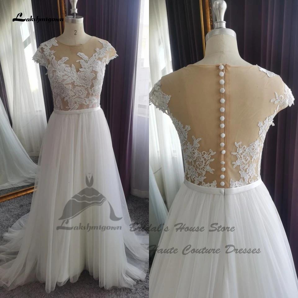 Женское богемное свадебное платье, длинное пляжное платье из белого тюля с короткими рукавами и кружевной шапкой, лето 2022