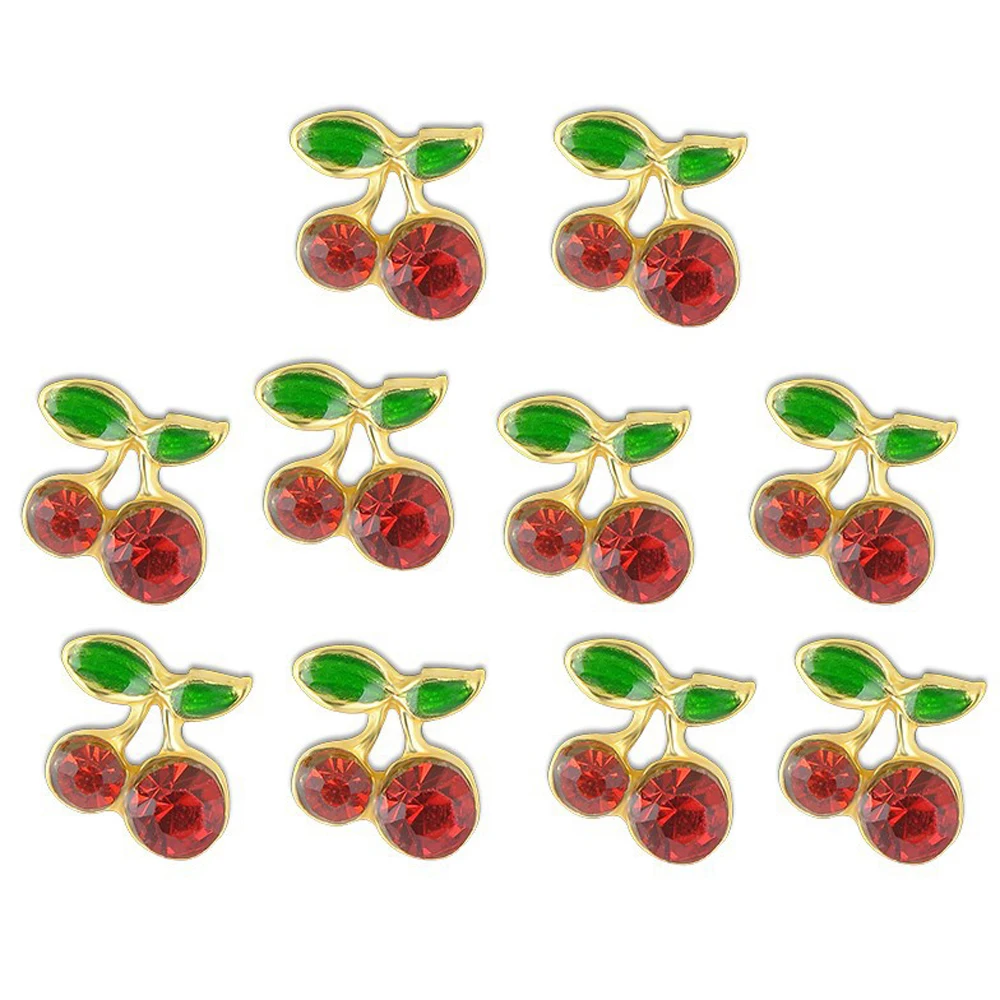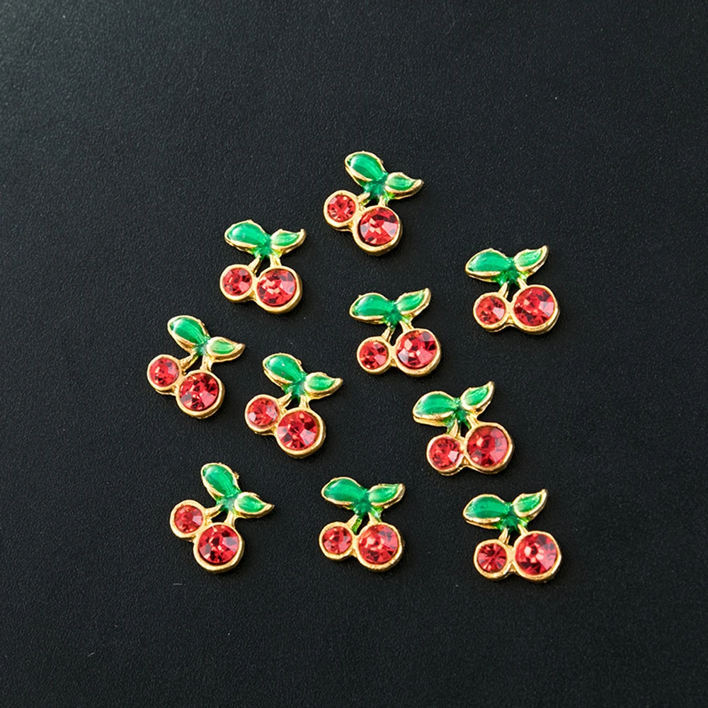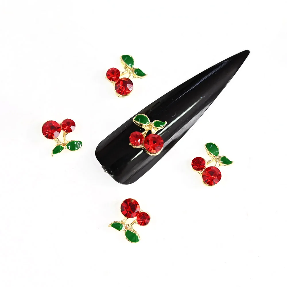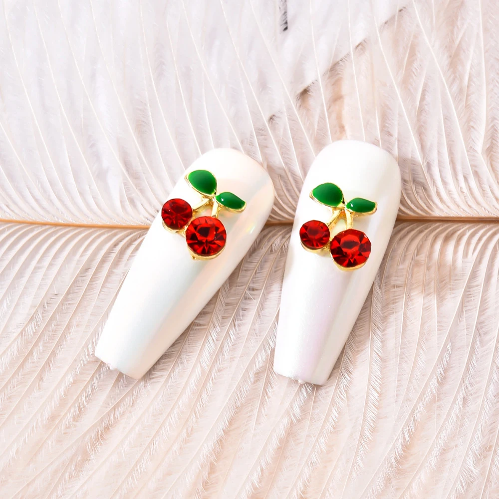 20 шт.лот, украшение для ногтей из вишневого металла, Красный Кристалл, горный хрусталь, драгоценный камень, прелести, сладкие фрукты, сплав, сделай сам, маникюрные детали для ногтей, B-2