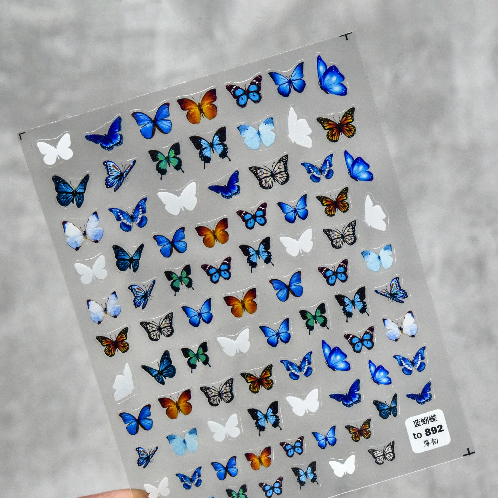 5D тисненые наклейки для ногтей в виде бабочек, дизайнерские наклейки в виде крыльев, синие ультратонкие декоративные наклейки в виде бабочек для дизайна ногтей, обертывания для маникюра, оптовая продажа