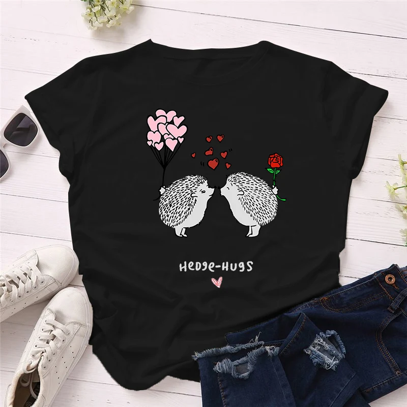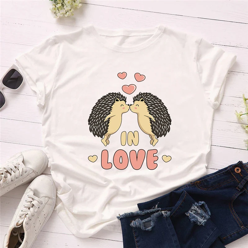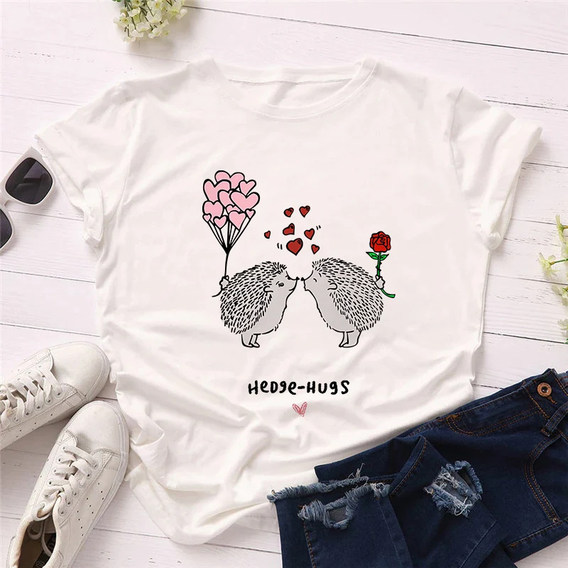 Женская винтажная одежда, новинка, женская одежда в стиле Харадзюку с графическим принтом ежика, топы с круглым вырезом, футболка, модная футболка большого размера