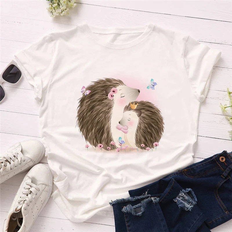 Женская Винтажная летняя футболка с коротким рукавом и принтом ежа