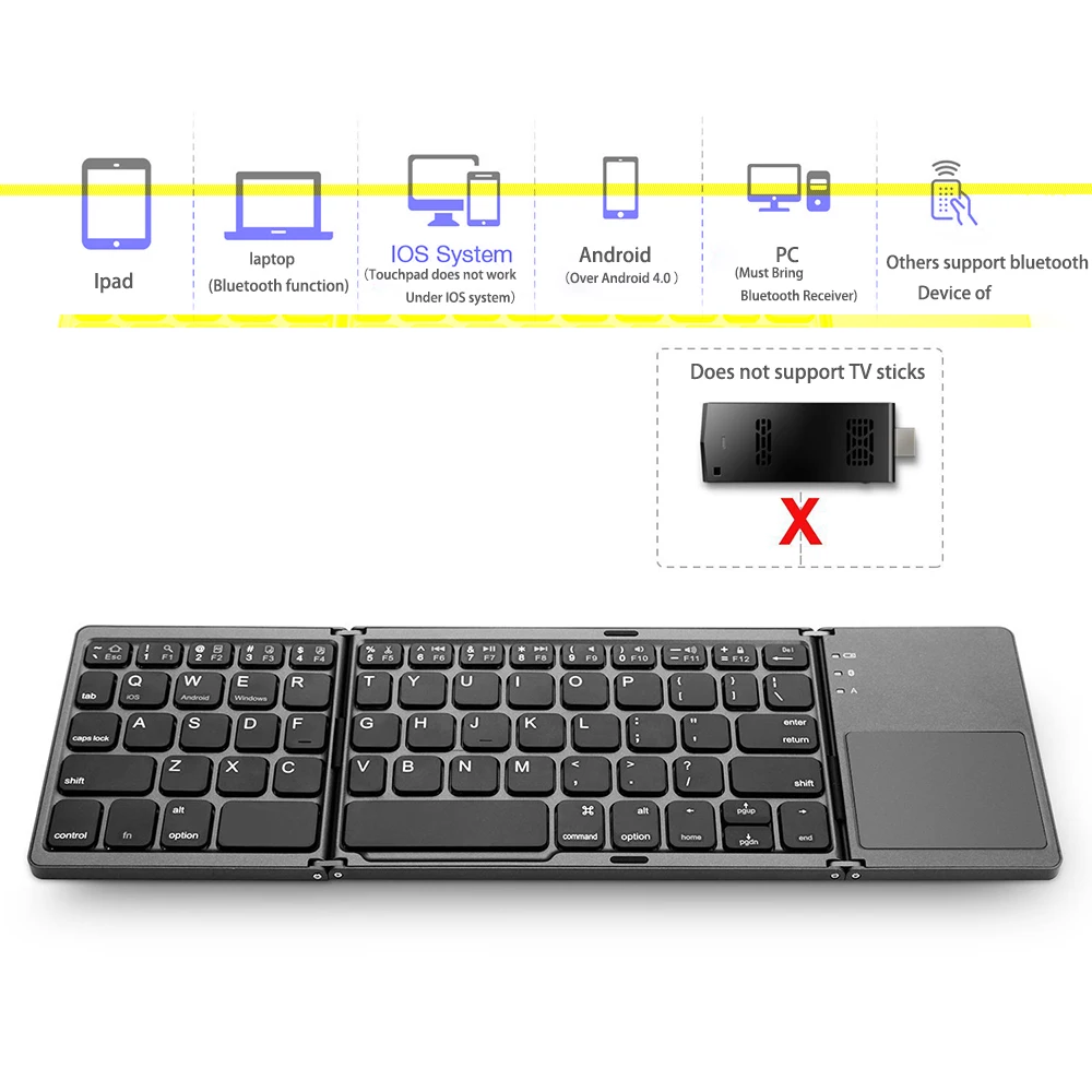 Складная клавиатура B033, беспроводная Bluetooth-клавиатура с тачпа...